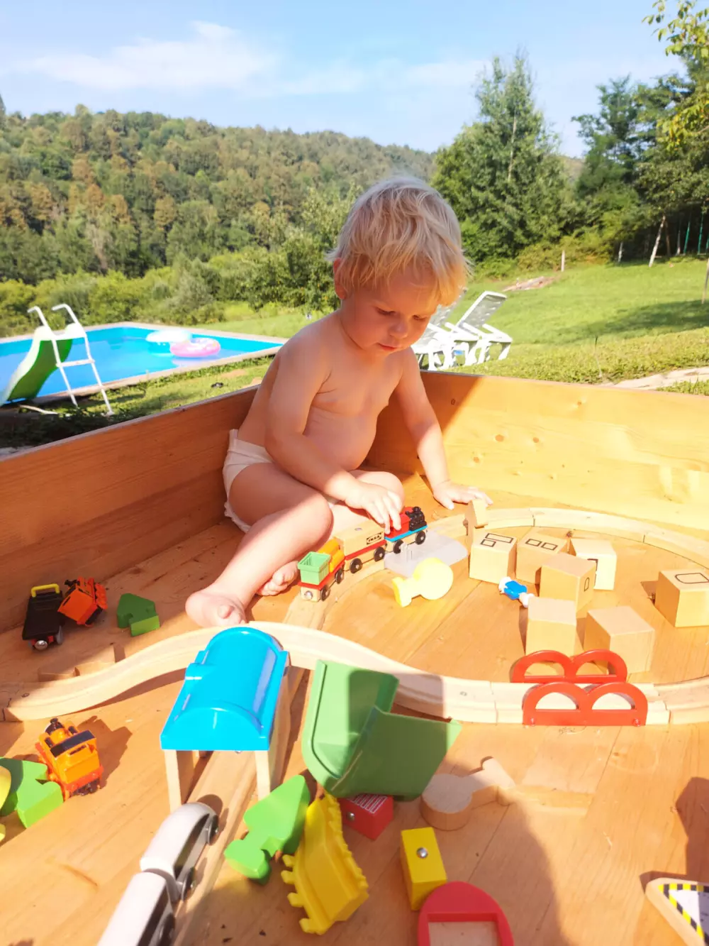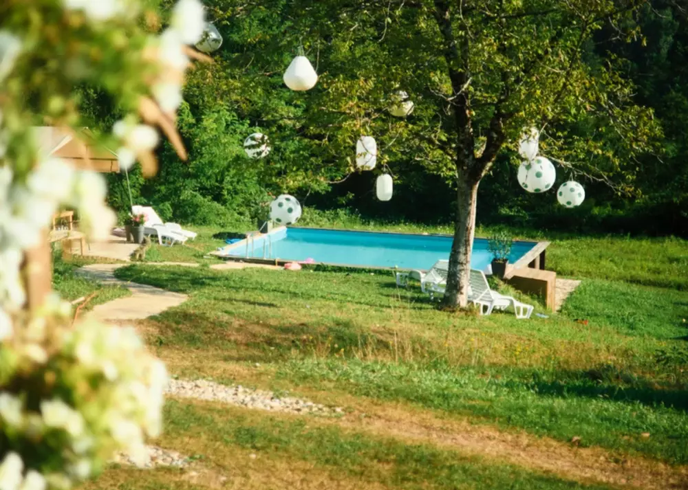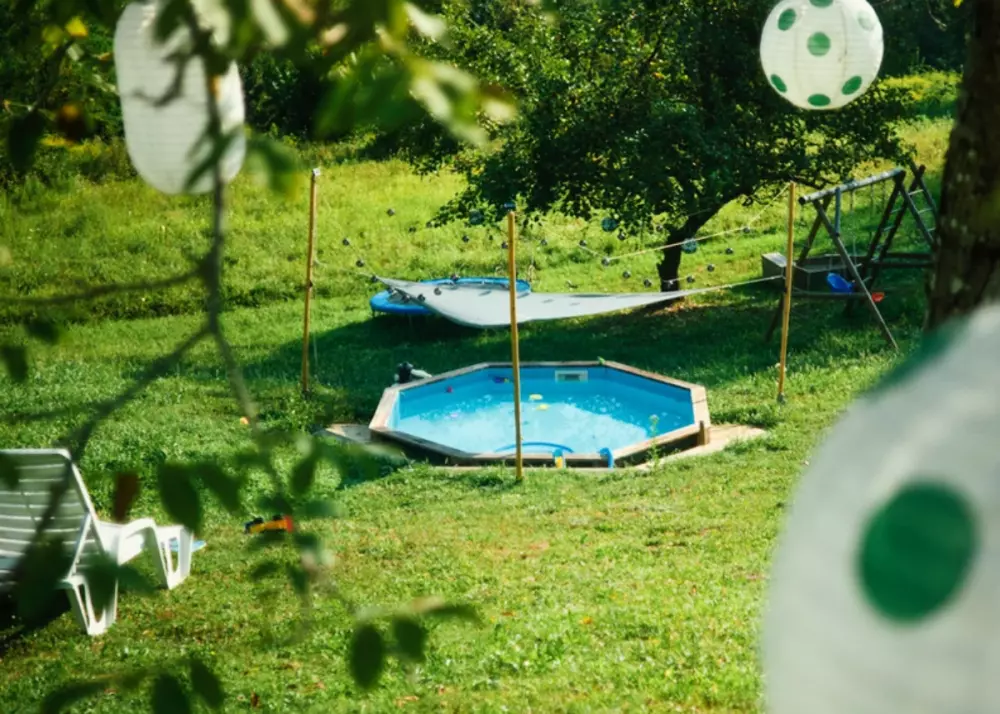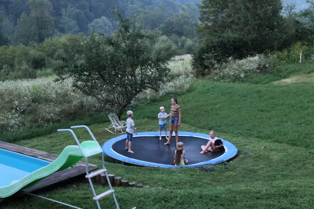 Activités et installations- Eau et plaisir: une belle piscine et une grande aire de jeux avec trampoline.
