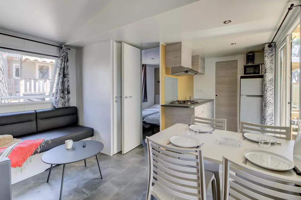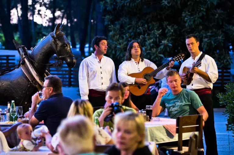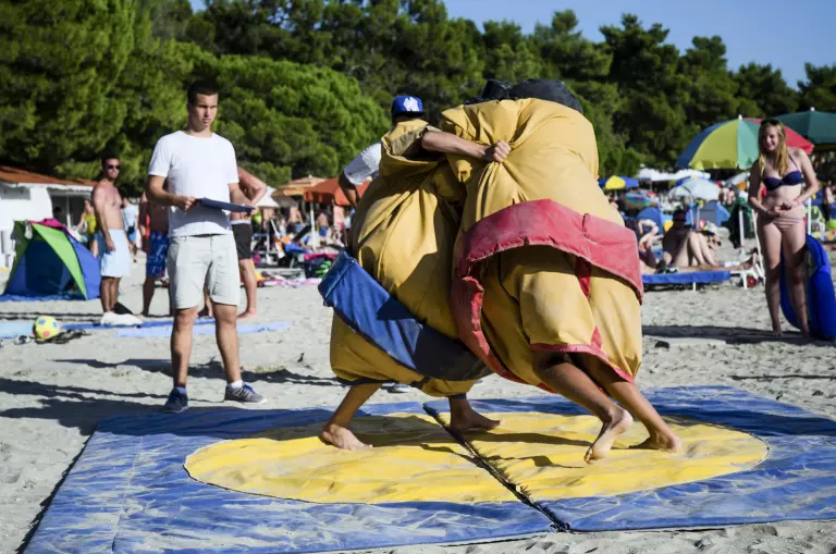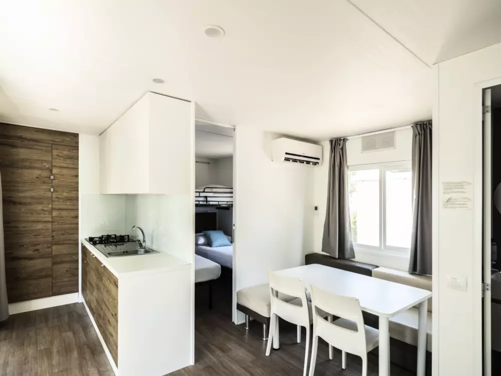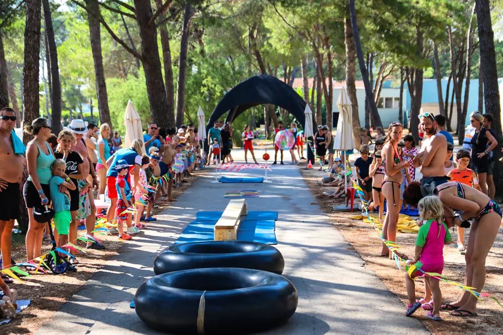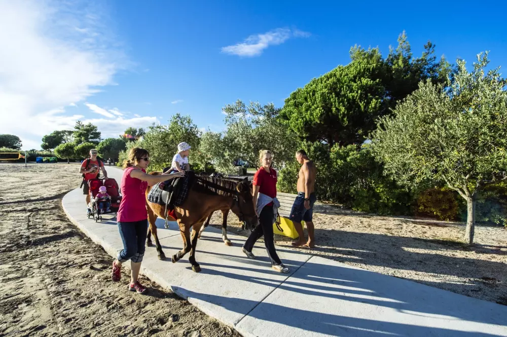 Une atmosphère animée imprègne le camping, offrant des terrasses de cafés propices à la détente. Vous trouverez un supermarché à disposition, ainsi qu'une variété de restaurants, bars, étals de fruits et légumes, boutiques de souvenirs et un kiosque à journaux. Les enfants peuvent profiter d'une aire de jeux, de mini-voitures et le long de la plage, il y a même un manège à poneys. Les activités pour les plus âgés ne manquent pas, avec des possibilités telles que la planche à voile, le tennis, la plongée sous-marine et la natation. Chaque soir, la scène de la plage s'anime avec des spectacles en direct ou de la musique.