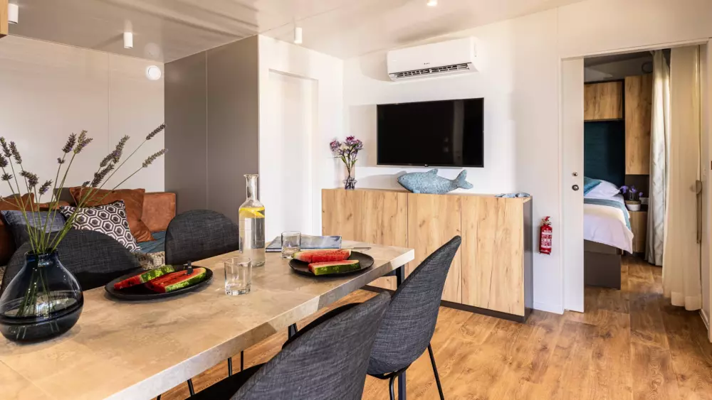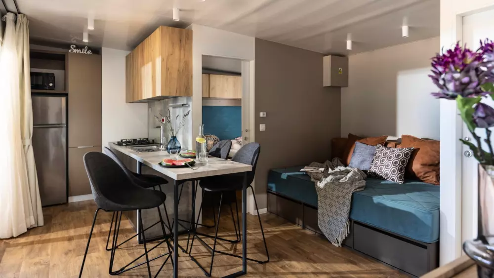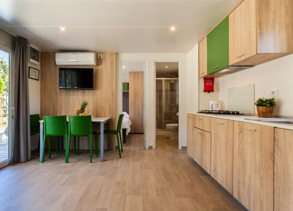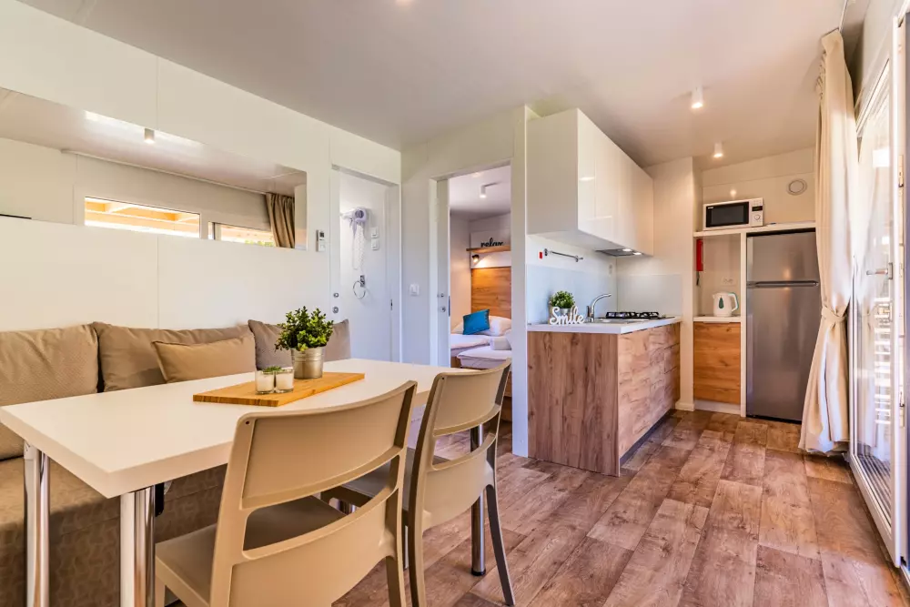 Afficher le planSpacious mobile homes able to accommodate a whole family or a group of friends. Welcome to your private, air-conditioned oasis with two bedrooms, a fully equipped kitchen suitable for home cooking, a dining room and a terrace.