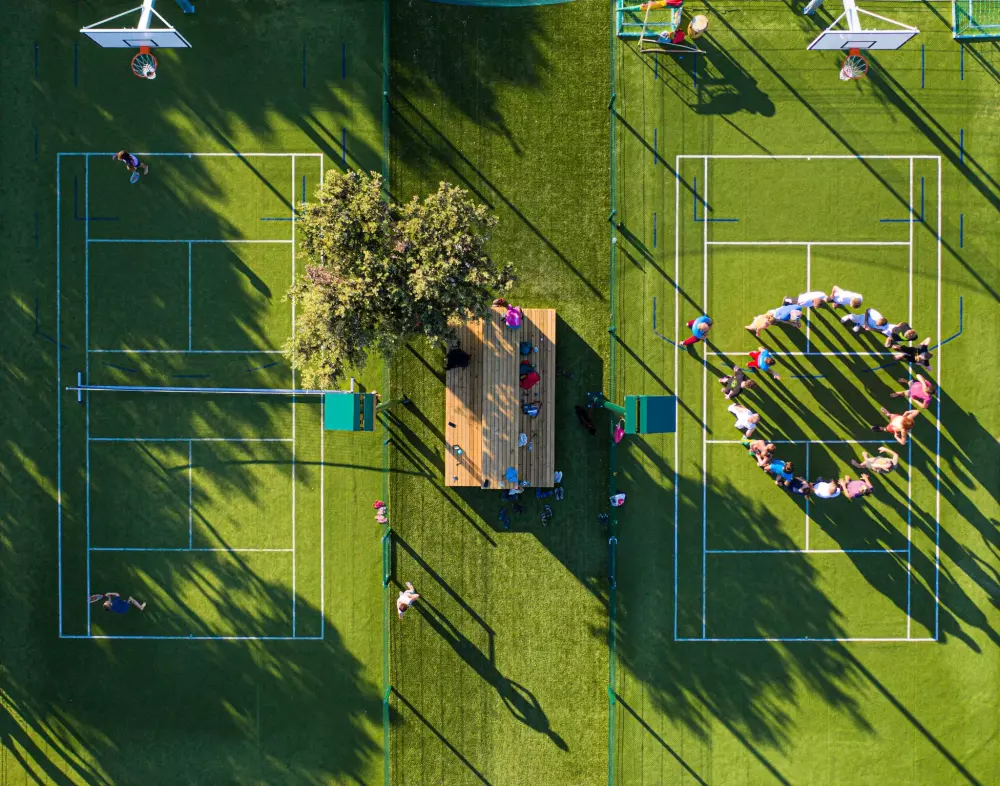 - Mini multisport playgrounds for tennis, football, volleyball, basketball and badminton