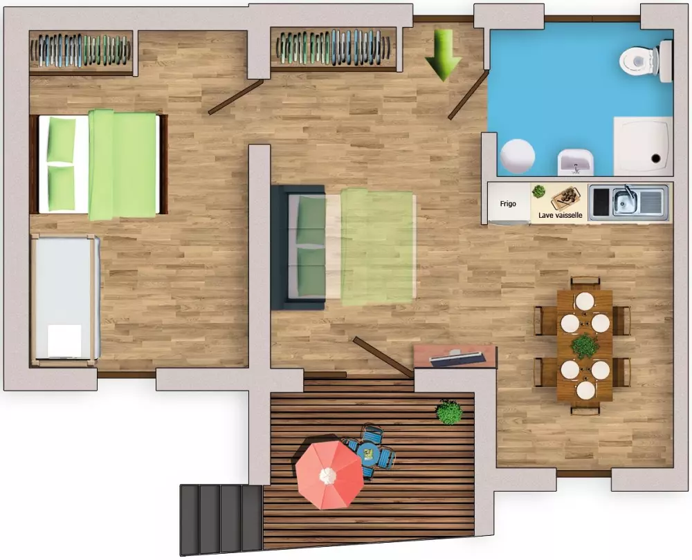 La résidence est équipée d'une piscine chauffée de 10x6, animations enfants en été, terrain multi-sport (basket, hand-ball, football), pétanque, barbecue collectif