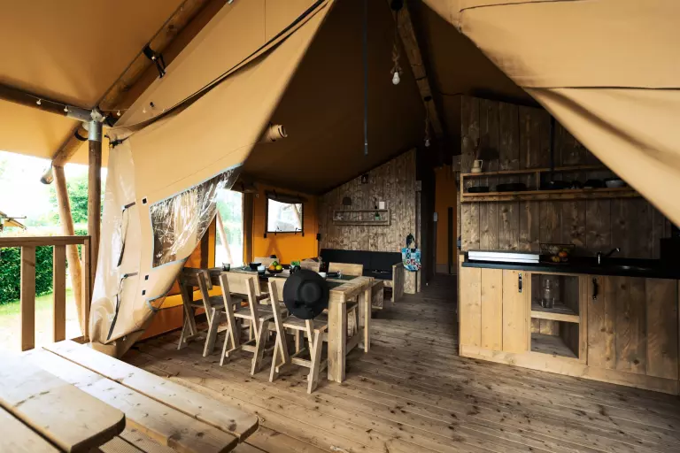 Côté services, bar, restaurant traditionnel, mini-marché de 180 m², sanitaires avec cabines individuelles et accès pour personnes à mobilité réduite, nurserie, laverie, accès internet à la réception, emplacements de camping verdoyants avec électricité et borne à eau…