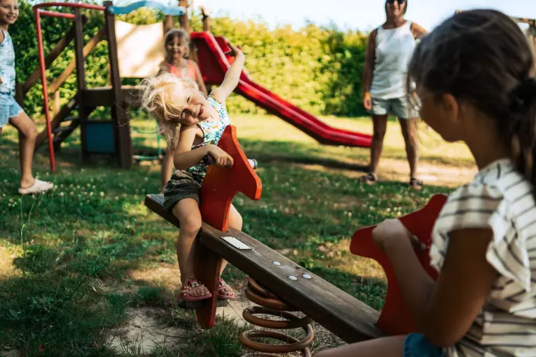 - Aire de jeux pour enfants : Zone de jeux pour enfants outdoor : jeux de sociétés, jeux gonflables, balançoire, trampoline
