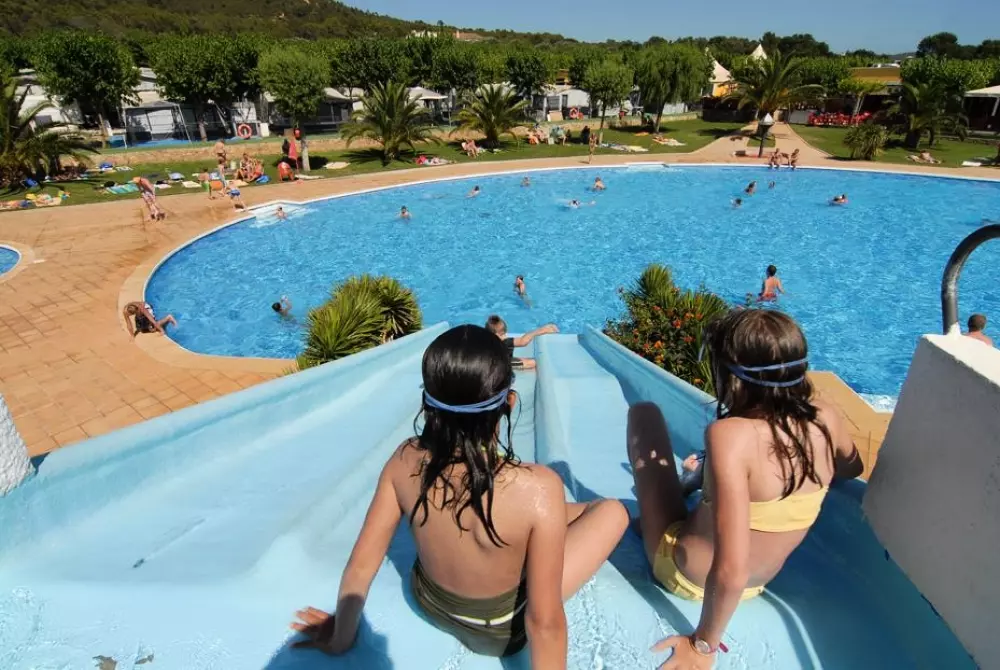 Camping avec services 1ª categorie, deux piscinnes, 1 grand tobogan, tennis, volleyball, basket, petanque, ping-pong, air de jeux pour petits enfants,zone de mini-club, activités organizés pour petits et adolescents.