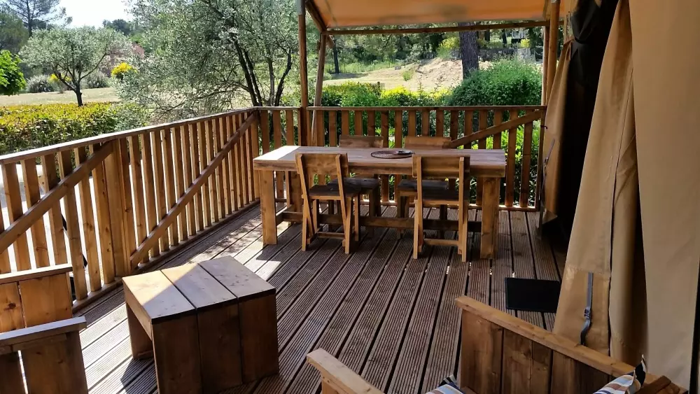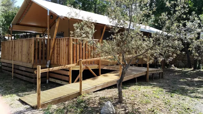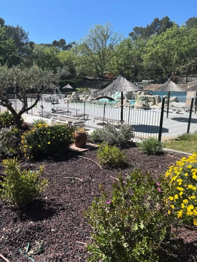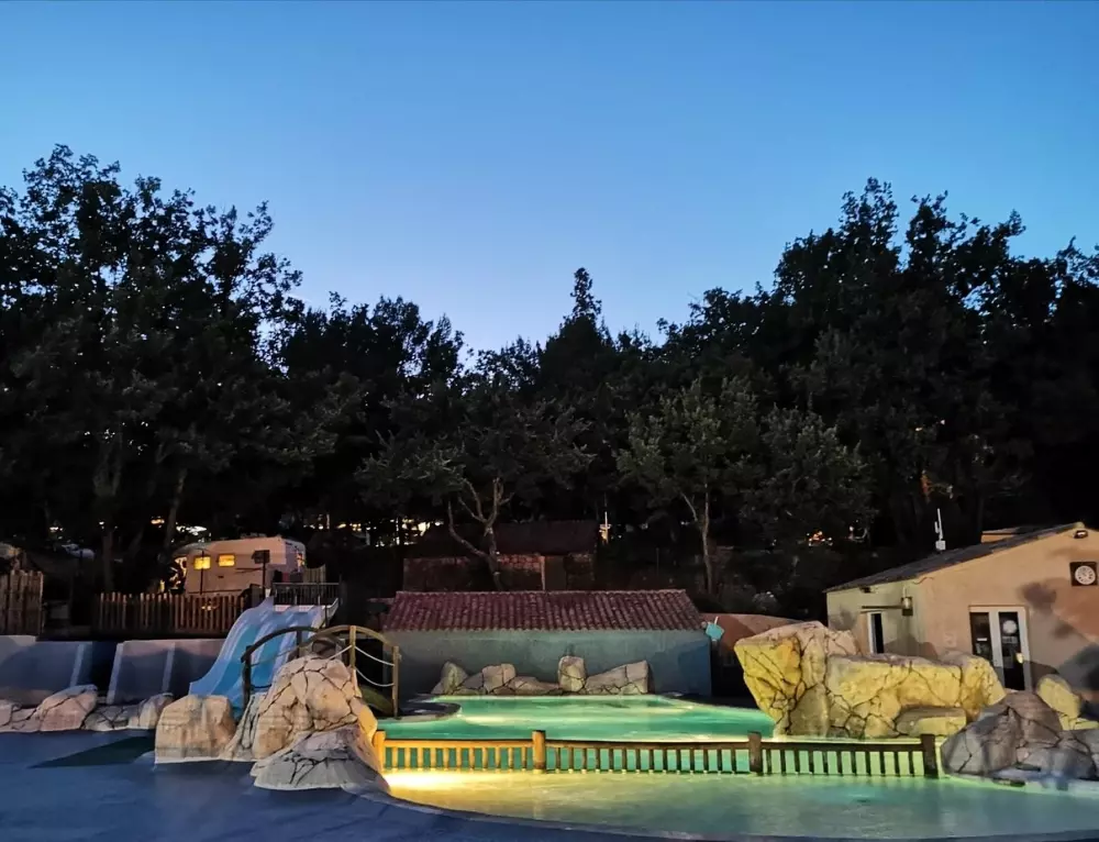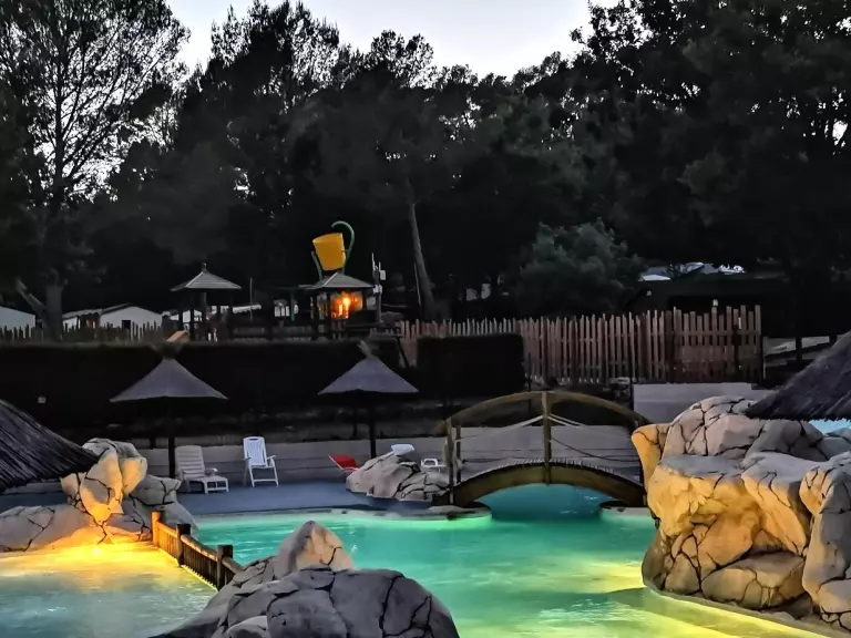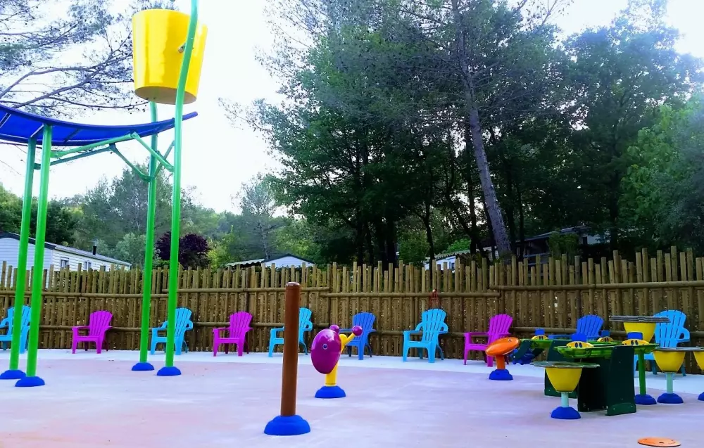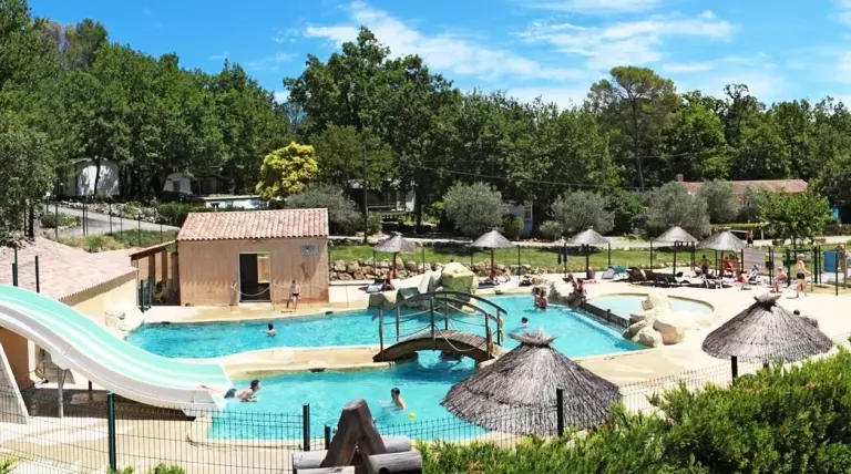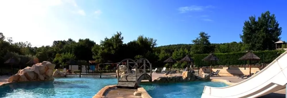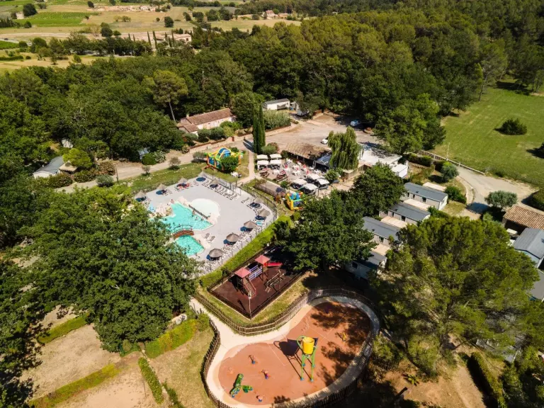 Le camping est entouré de vignes et de terres d'oliviers et se trouve entre les plages de la Côte d'Azur (Ste Maxime/St Raphaël) et les Gorges du Verdon. Il dispose d'un espace aquatique de 1200 m2 avec une grande piscine idéale pour les moments de détente avec un espace balnéo, un toboggan ainsi que des jeux d'eaux pour les enfants, des aires de jeux et une pataugeoire.