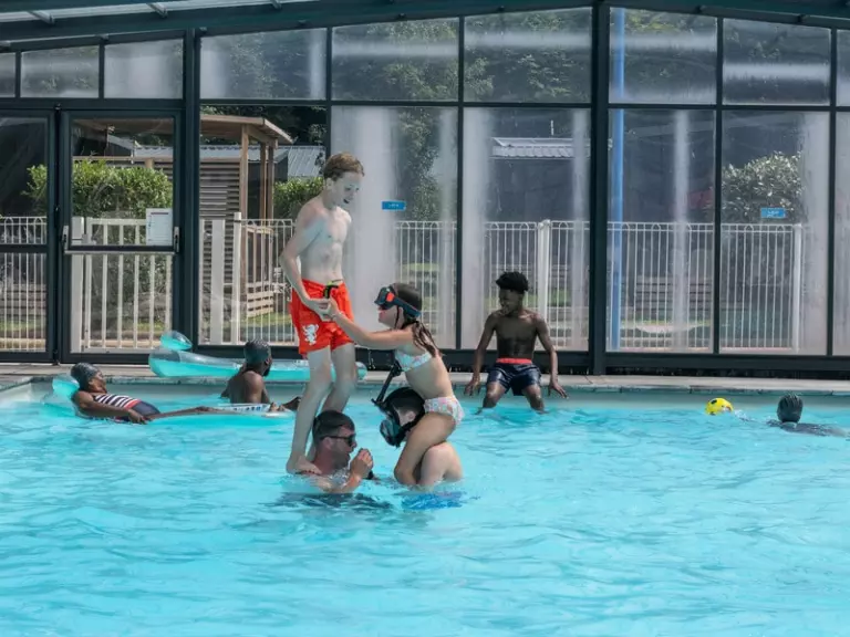 Pour les moments de baignade, le camping dispose d'une piscine chauffée et couverte, où petits et grands peuvent s'amuser et se détendre quel que soit le temps. Les enfants peuvent également profiter de l'aire de jeux, un espace sécurisé où ils peuvent se divertir en toute sécurité.
