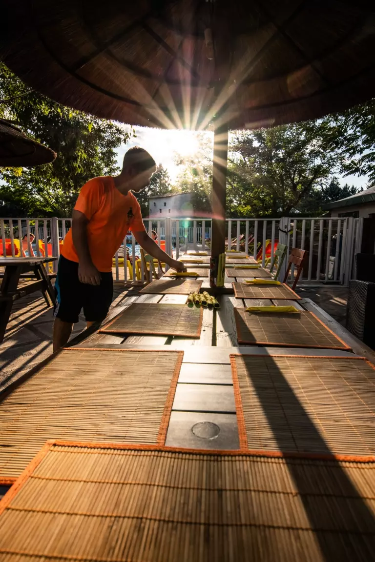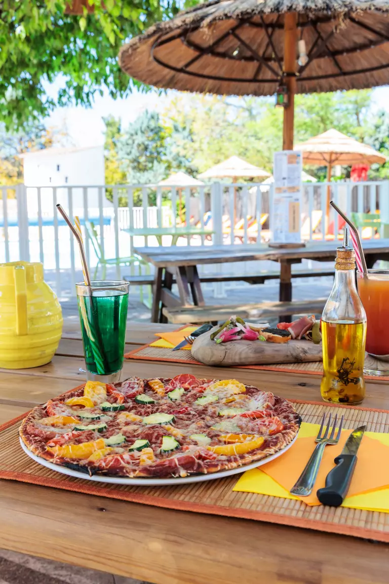 C'est à 2 pas du centre du fameux village de Ruoms et à 700 m seulement des rives de l'Ardèche qu'est situé notre camping : commerces traditionnels, boutiques d'artisanat, marchés typiques, animations, restaurants et plages … depuis Les Paillotes tout est accessible à pied pour de calmes et reposantes vacances dans une ambiance résolument conviviale et détendue. Vivez une expérience de vacances inoubliable où détente et divertissement se rencontrent au sein d'un cadre naturel exceptionnel. Nous vous invitons à découvrir nos services qui feront de votre séjour un moment mémorable. Sur place, tout est organisé pour que vous viviez pleinement vos vacances : Détente, Découverte et Divertissement y sont au rendez-vous!!! Espace aquatique chauffé, Restaurant/Snack, Bar et Cocktails, WIFI gratuit, Activités et animations.Au camping Les Paillotes place au Farniente, à la baignade et à la pratique de nombreuses activités sportives et culturelles. Alors bienvenue en Ardèche sous le soleil des Paillotes.