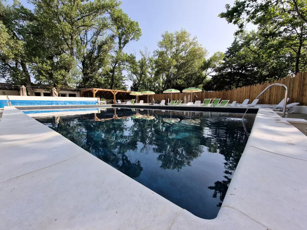 Piscine et pataugeoire,rivière, snack-bar, terrain de volley-ball, table de tennis de table, aire de jeux enfants, pétanque.