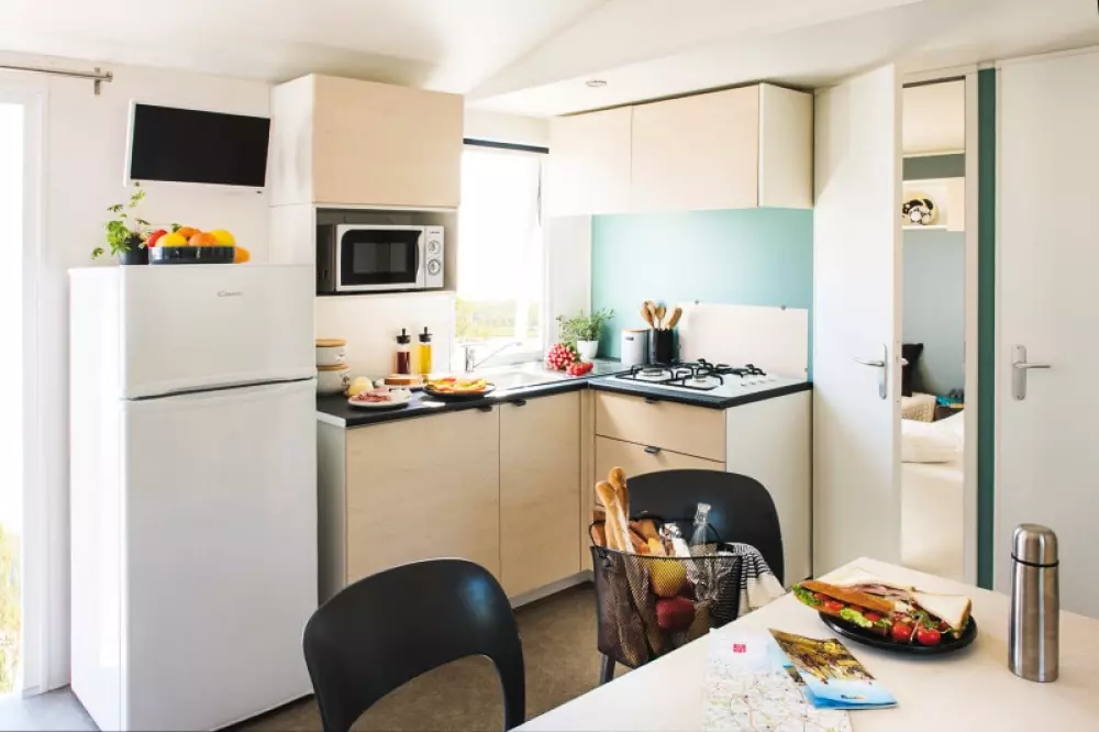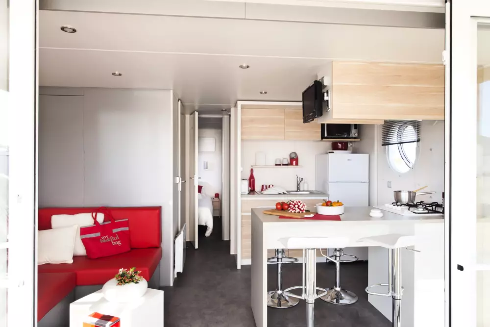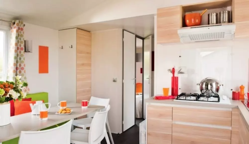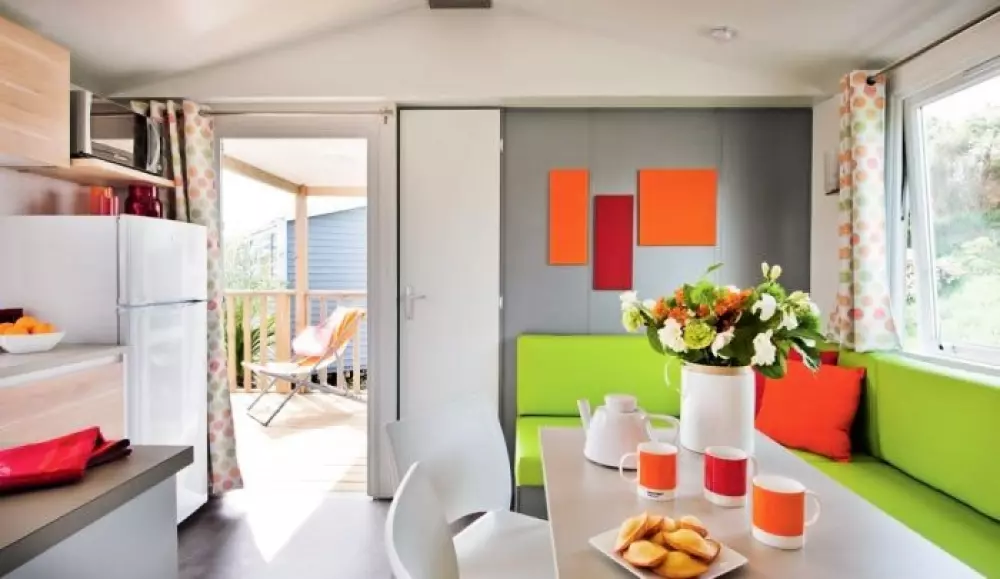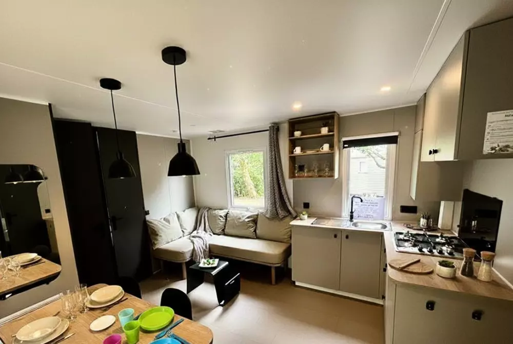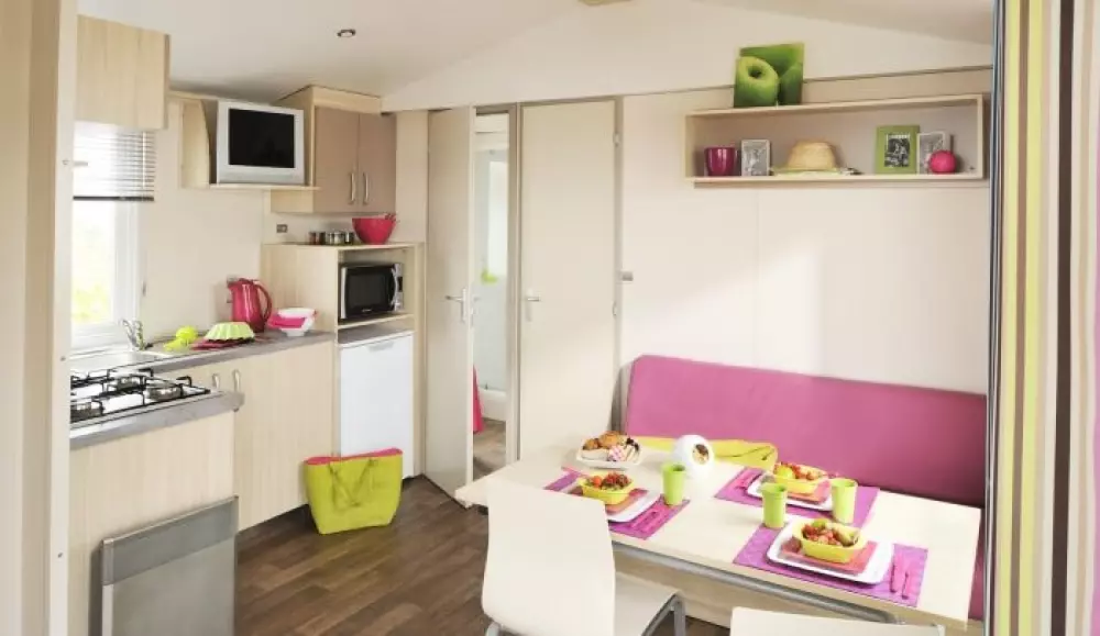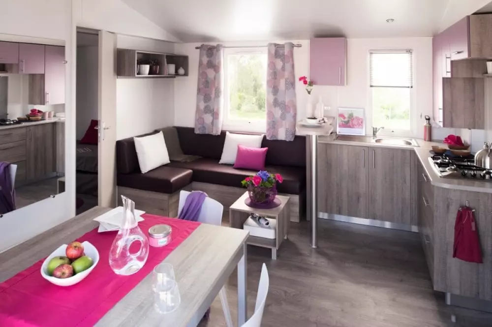 Locations de mobil'homes, chalets, caravane, roulotte et un mobil'home pour personne à mobilité réduite.