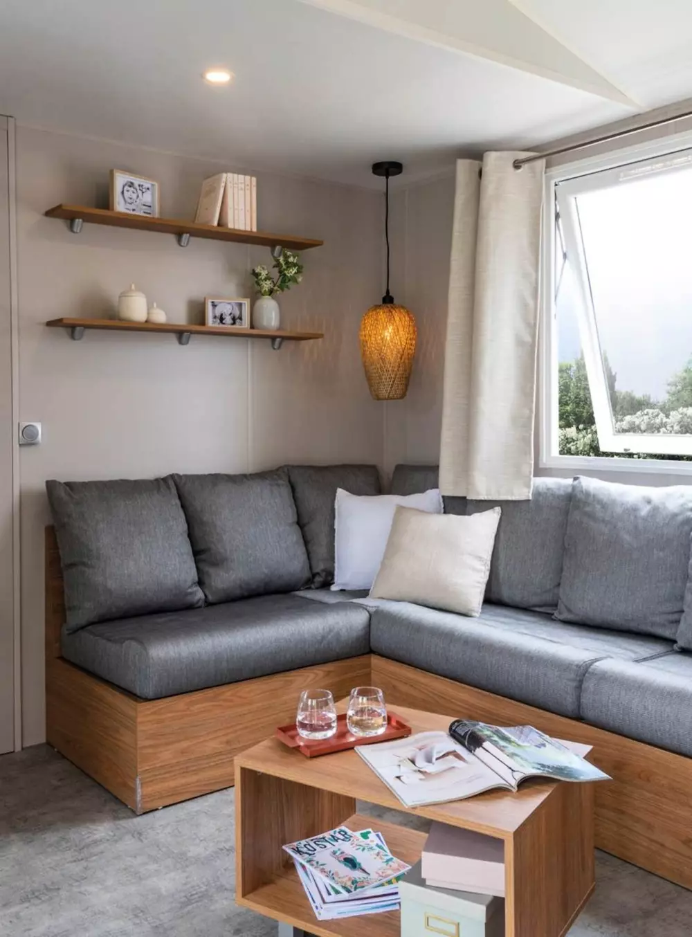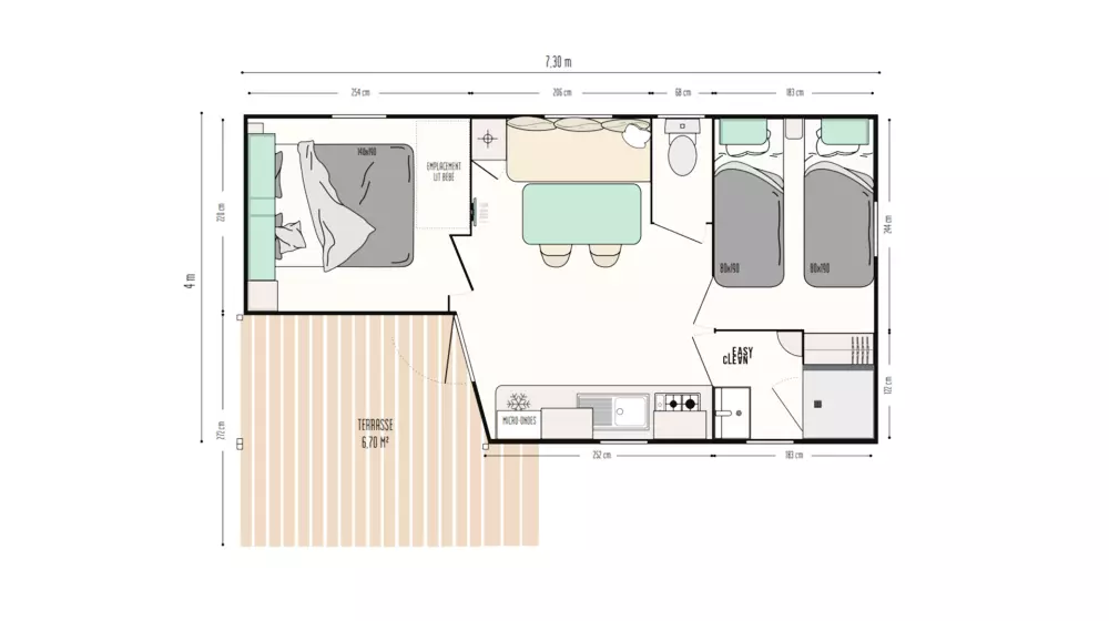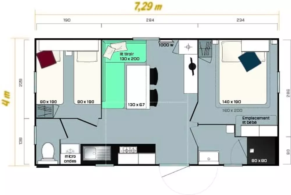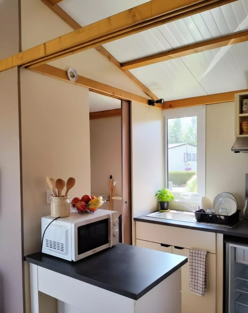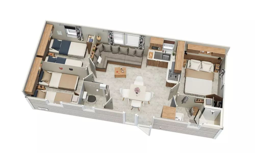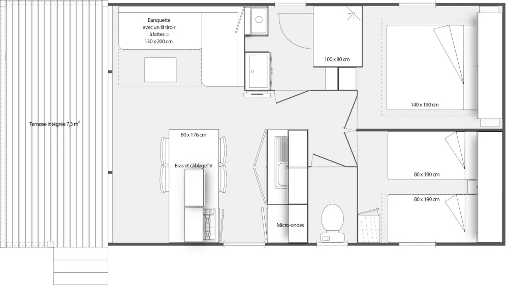 Locations de mobil'homes, chalets, caravane, roulotte et un mobil'home pour personne à mobilité réduite.