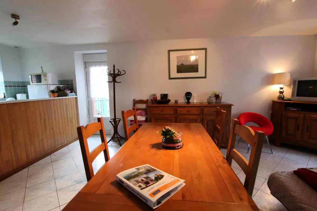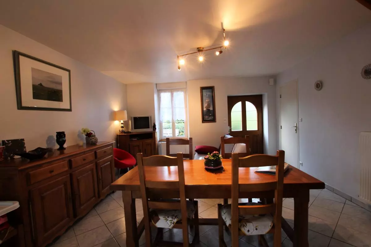 Maison mitoyenne à celle du propriétaire. Séjour. Coin-cuisine. 1 chambre (1 lit 140). 1 chambre (1 lit 140). 1 lit bébé et chaise haute. Salle d'eau. 3 wc. TV. Lave-linge. Draps et linge de maison en location. Service ménage en supp. Chauffage central en supp. Terrain clos commun. Terrasse. Salon de jardin. Barbecue. Parking. Terrain de pétanque. Un agréable jardin avec 2 imposants magnolias fait face à cette demeure de caractère dont une partie a été aménagée sur 3 niveaux pour vous recevoir. Le centre ville de la cité des manuscrits du Mt St-Michel n'est qu'à quelques pas.