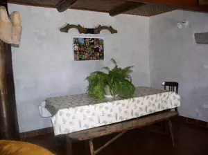 Situé au pied du Massif du Sancy et de la réserve naturelle de la Vallée de Chaudefour, au coeur du Parc Naturel Régional des Volcans d'Auvergne. Grand appartement de 75 m2 occupant la quasi-totalité d'une maison de caractère. Rez-de-chaussée : grand séjour avec coin salon (cantou traditionnel avec insert) et coin cuisine. 1er étage : une chambre avec 1 lit en 140 + 1 lit en 90, une chambre avec 2 lits en 90, salle d'eau, WC indépendant. Chauffage électrique 50 à 80 euros selon la période. Jardin clos arboré et fleuri, vue dégagée sur le paysage du Sancy.