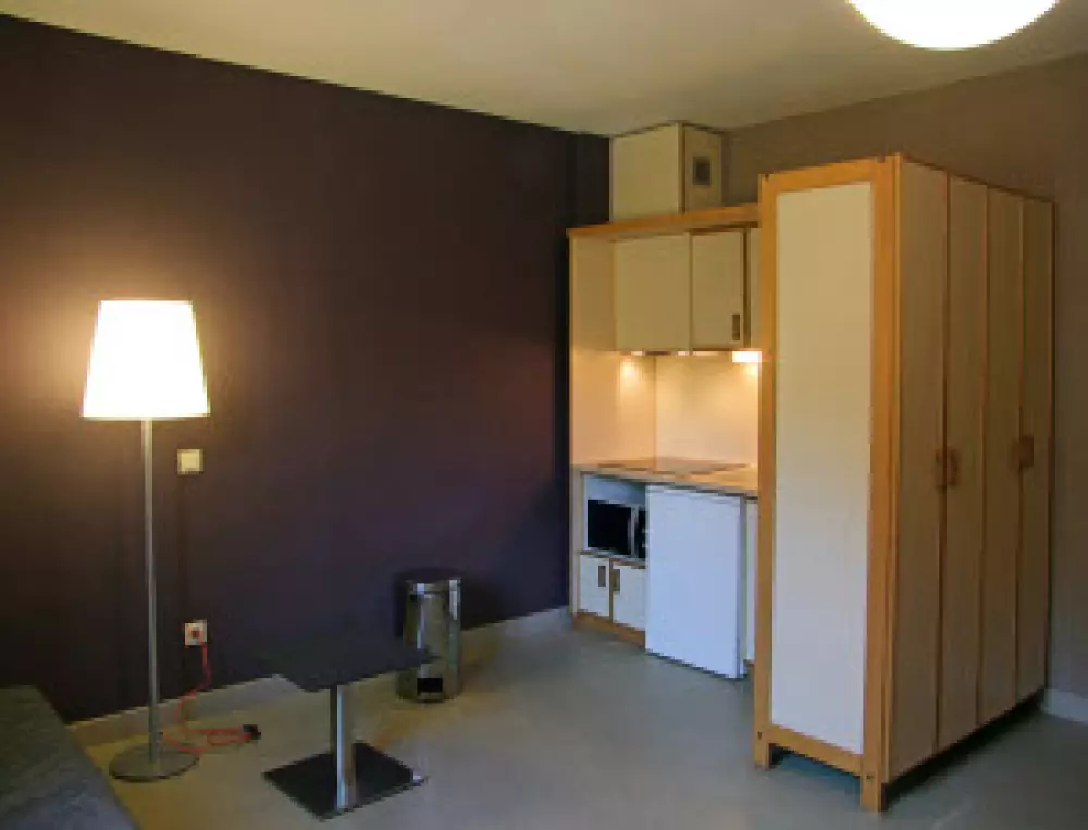 6 studios rénovés au 1er étage de la résidence (20 apparts), agréables et fonctionnels, vue privilégiée sur la Sioule qui s'écoule face à la résidence, dans le cadre verdoyant de la station thermale de Châteauneuf- les-Bains. Chaque studio comprend une kitchenette équipée, un couchage convertible :160x200 pour 2 pers, une salle d'eau/wc. Le mobilier (plutôt design) et la déco sont dans l'air du temps. Buanderie collective. Espace extérieur non clos fleuri avec salons de jardin, chaises longues, barbecue Wifi dans les studios. Chauff. électrique compris. Commerces/Services : Châteauneuf-les-Bains, St-Gervais-d'Auvergne.Nombrx parkings privés proches