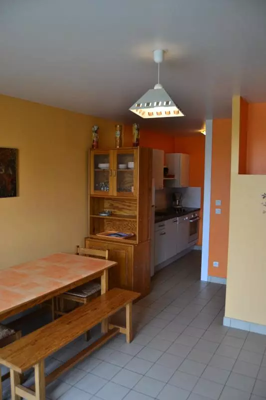 Pavillon mitoyen. Séjour. Coin-cuisine équipée. 2 chambres (1 lit 140) et (2 lits 90). Salle d'eau. Wc. Prise TV. Lave vaisselle. Lave-linge commun. Sèche-linge commun. Draps en location. Chauffage électrique en supp. Terrain non clos commun. Terrasse. Salon de jardin. Aire de jeu commune. Parking. Au sein d'une charmante station balnéaire, vous profiterez des activités liées à la mer et découvrirez les cultures de moules et d'huitres indissociables de cette région ! Village de 14 gîtes mitoyens comprenant également un gîte d'étape de 19 personnes. 2 barbecue collectifs sont à disposition. En juillet et août, une salle TV et une salle de jeux sont ouvertes.Internet possible à proximité.