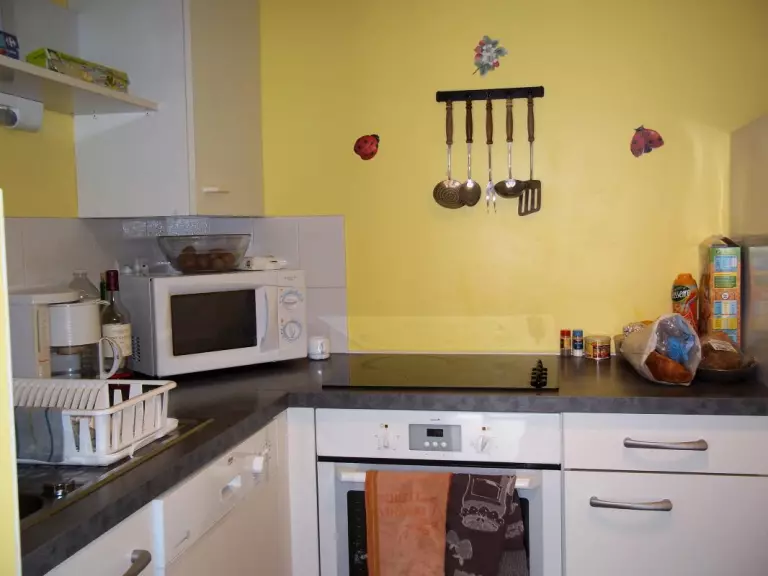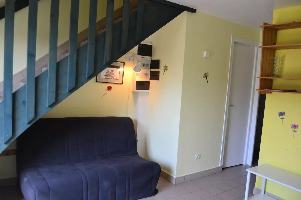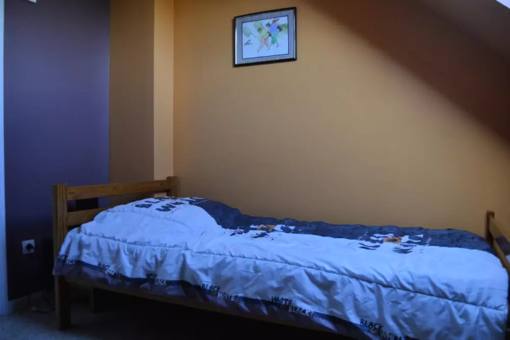 Pavillon mitoyen. Séjour. Coin-cuisine équipée. 2 chambres (1 lit 140) et (2 lits 90). 1 canapé convertible. Salle d'eau. Wc. Prise TV. Lave vaisselle. Lave-linge commun. Sèche-linge commun. Draps en location. Chauffage électrique en supp. Terrain non clos commun. Terrasse. Salon de jardin. Aire de jeu commune. Parking. Village de 14 gîtes mitoyens comprenant également un gîte d'étape de 19 personnes. 2 barbecue collectifs sont à disposition. En juillet et août, une salle TV et une salle de jeux sont ouvertes.Internet possible à proximité.