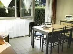 Maison mitoyenne. Séjour. Coin-cuisine. Chambre 1 : 1 lit 140. CH 2 : 2 lits 90 + 1 lit appoint 1 pers (vue sur mer 2ème étage). Salle d'eau. Wc. TV. Lave-linge et sèche-linge communs (payant). Equipement bébé sur demande. Draps en location. Service ménage. Chauffage électrique en supp. Terrain clos commun. Terrasse. Salon de jardin. Barbecue collectif. Terrain de pétanque. Parking. Village de 5 gîtes mitoyens plus un gîte de groupes à proximité, abri pour vélos, idéalement situé à quelques mètres de la plage et de l'école de voile dans une station balnéaire conviviale et familiale. Commerces et restaurants à proximité, marché à 500m tous les dimanches.
