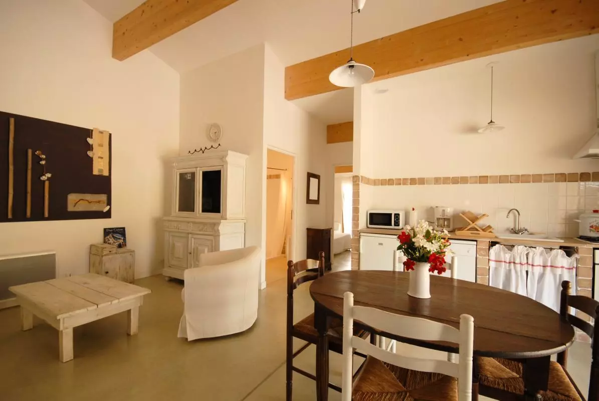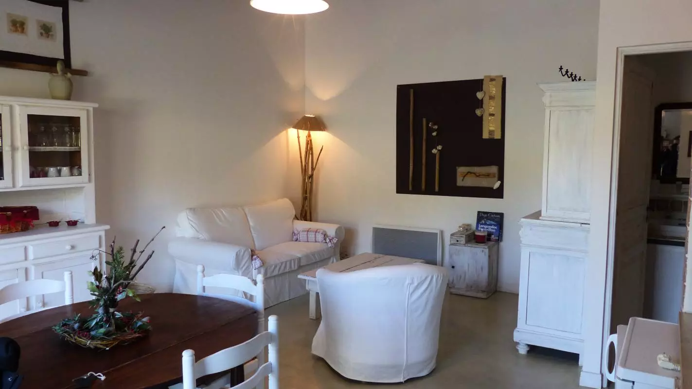 Gîte de plain pied mitoyen aux propriétaires comprenant un séjour-cuisine, SDE, Wc indép. 2 chambres avec 1 lit en 140 et 2 lits en 80. Pergola avec salon de jardin devant le gîte. Piscine 4.20 x 11 des propriétaires à disposition. Chauffage électrique en sus (semaine 50Euros/WE 30 euros). Lit bébé à disposition. Barbecue. Buanderie à partager à 10m avec congélateur, lave linge et étendoir. Piscine à partager ouverte de 10 à 18h. Gîte situé aux abords du village, dans un environnement de pleine nature. A proximité du Canal du Midi, proche des sites du Somail, de Narbonne et de la cité de Minerve. Sur place la propriétaire oleicultrice et trufficultrice, vous fera partager et découvrir sa passion pour ces deux produits d'exception. Longues promenades pédestres balisées au départ du gîte et équestres à 1.5 km dans les garrigues environnantes.