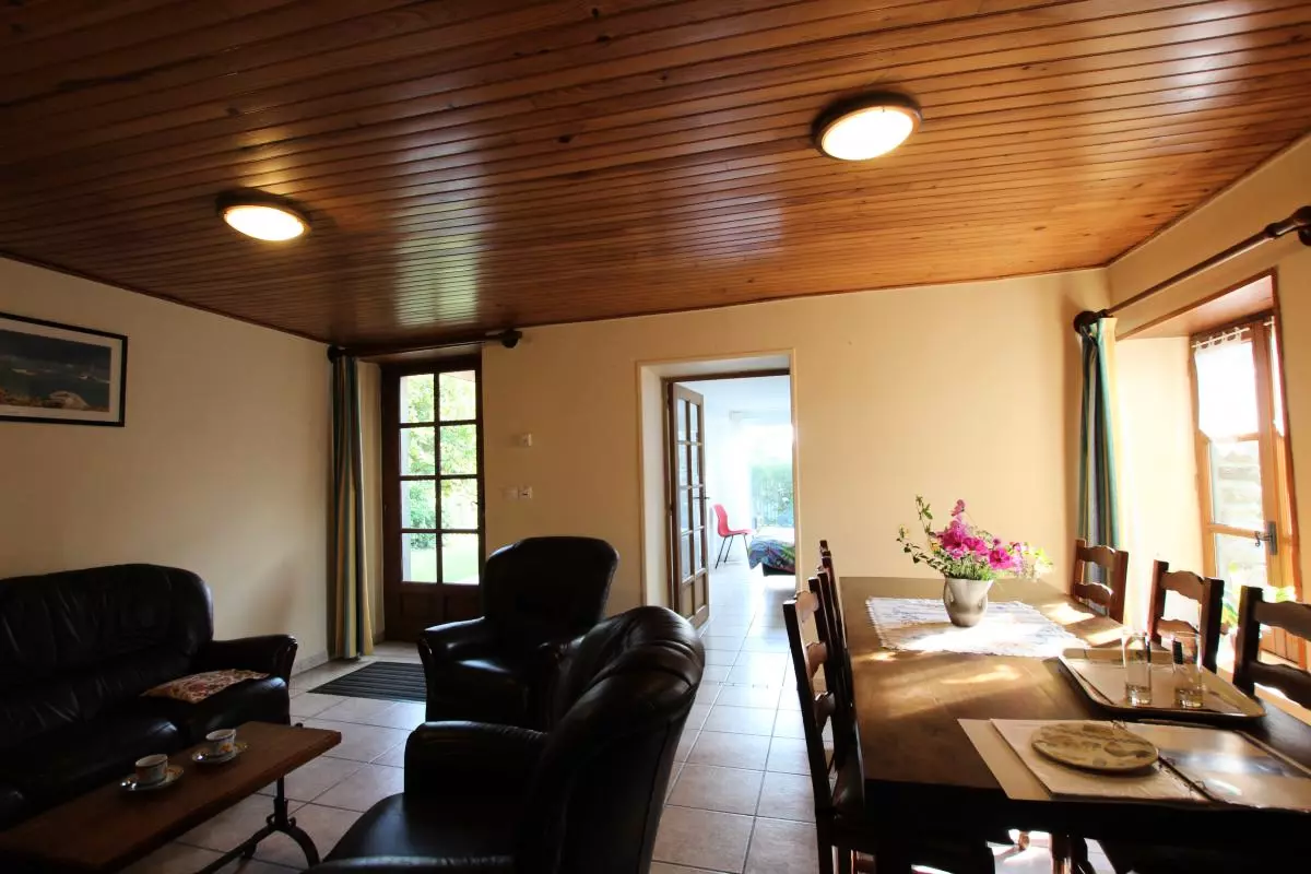 Maison indépendante. RDC : Séjour. Cuisine. Salle d'eau.WC. Chambre 1 (1 lit 140). ETAGE : Chambre 2 (1 lit 140x200) Ch3 (3 lits 90). 2 lits bébé sur demande. Salle de bains. WC. Cheminée. TV. Lecteur DVD. Lave-linge. Lave-vaisselle. Draps en location. Service ménage. Bois fourni. Accès internet. Chauffage électrique en supplément. Terrain clos privé. Salon de jardin. Barbecue. Abri pour vélos. Terrasse couverte. Au centre d'un vieux hameau en pierre, petite maison à l'intérieur coquet non loin du bord de mer. Jardin agréable sur le côté du gîte. Production ostréicole sur cette partie du littoral.