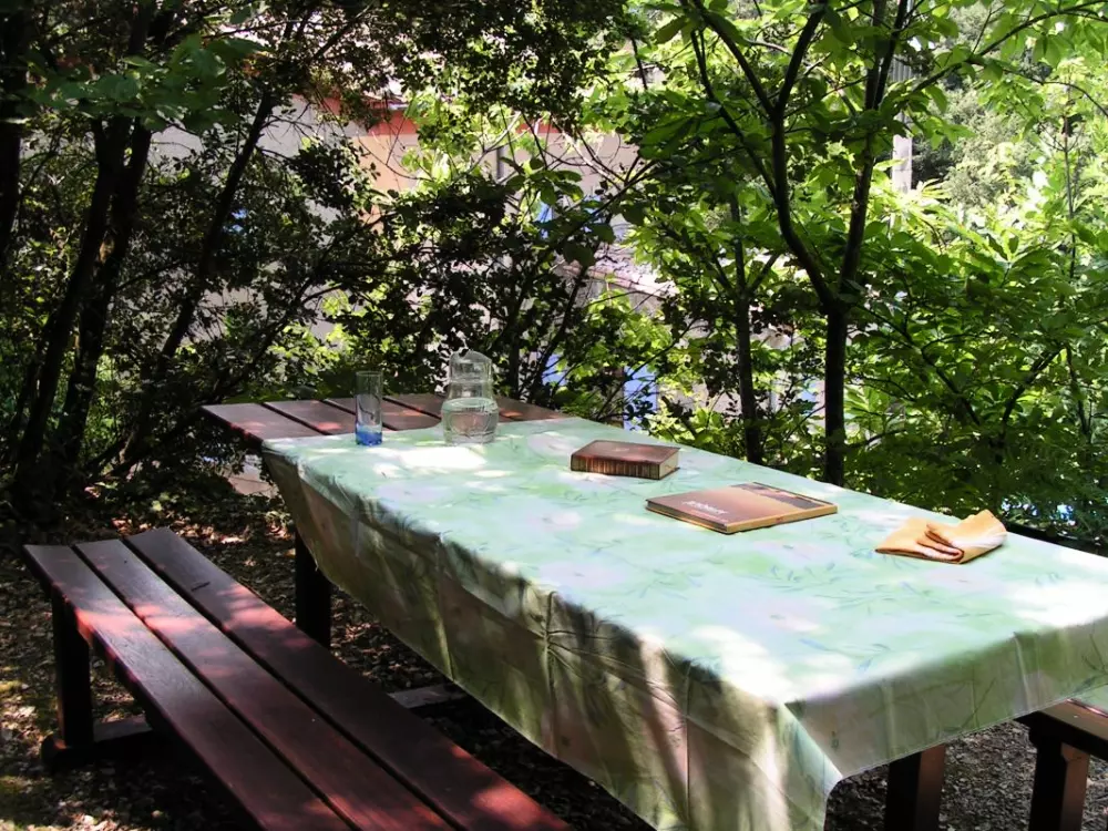 Au rdc: séjour-salon. Cuisine toute équipée. Salle d'eau avec Lave Linge. WC ind. A l'étage : 4 chambres avec 4 lits de 2 pers. Chauffage électrique. Taxe de séjour. Situé dans un environnement de chênes verts et de châtaigniers, le gîte est mitoyen à une maison d'habitation, tout proche du célèbre Moulin à papier de Brousses avec un jardin en terrasses non clos (salon de jardin et barbecue).Cave avec rangement pour les vélos.Sentiers et parcours botaniques au départ du gîte.