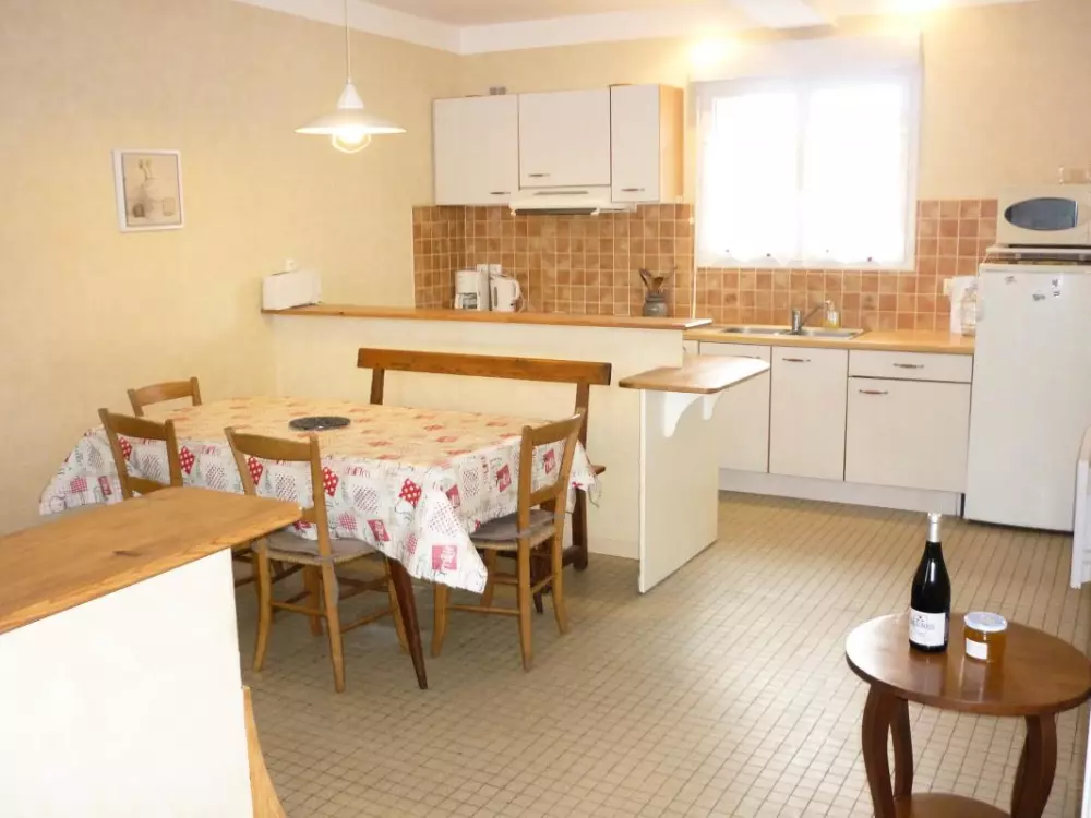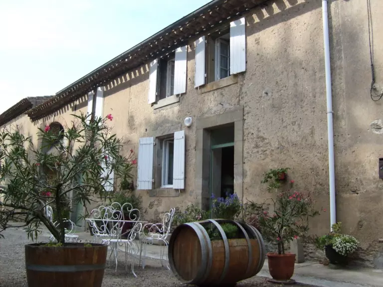 Rez de chaussée: séjour-cuisine. A l'étage: 3 chambres (2 lits 2 personnes. - 1 lit 1 personne. - 1 lit bébé). Salle d'eau. WC. Chauffage électrique en sus. Taxe de séjour à régler sur place. Maison mitoyenne dans la cour d'un domaine situé à 5 Kms de CARCASSONNE dans le hameau d'Herminis en bordure de la Voie Romaine . Le domaine est sur la route de Carcassonne à Bram, avec cour et parc attenant non clos mitoyen avec les propriétaires. Barbecue, salon de jardin.