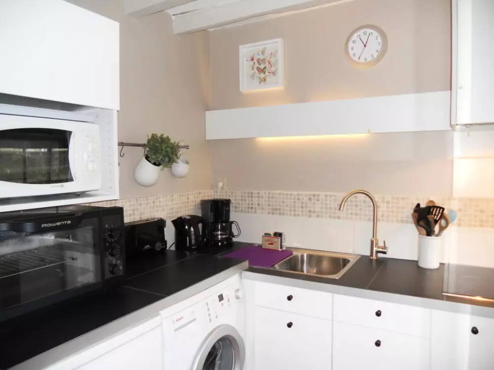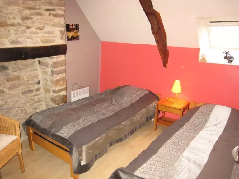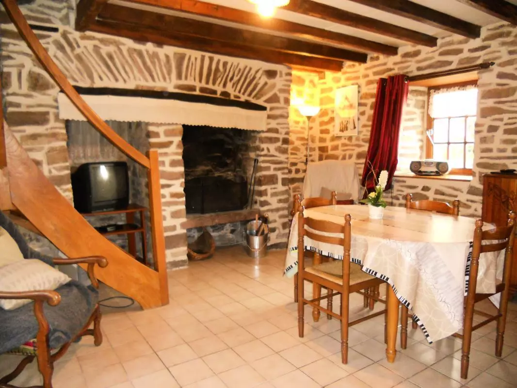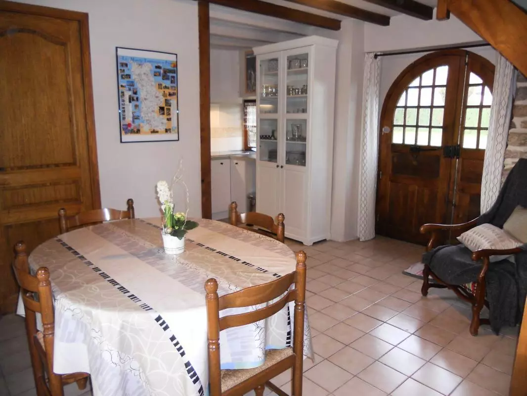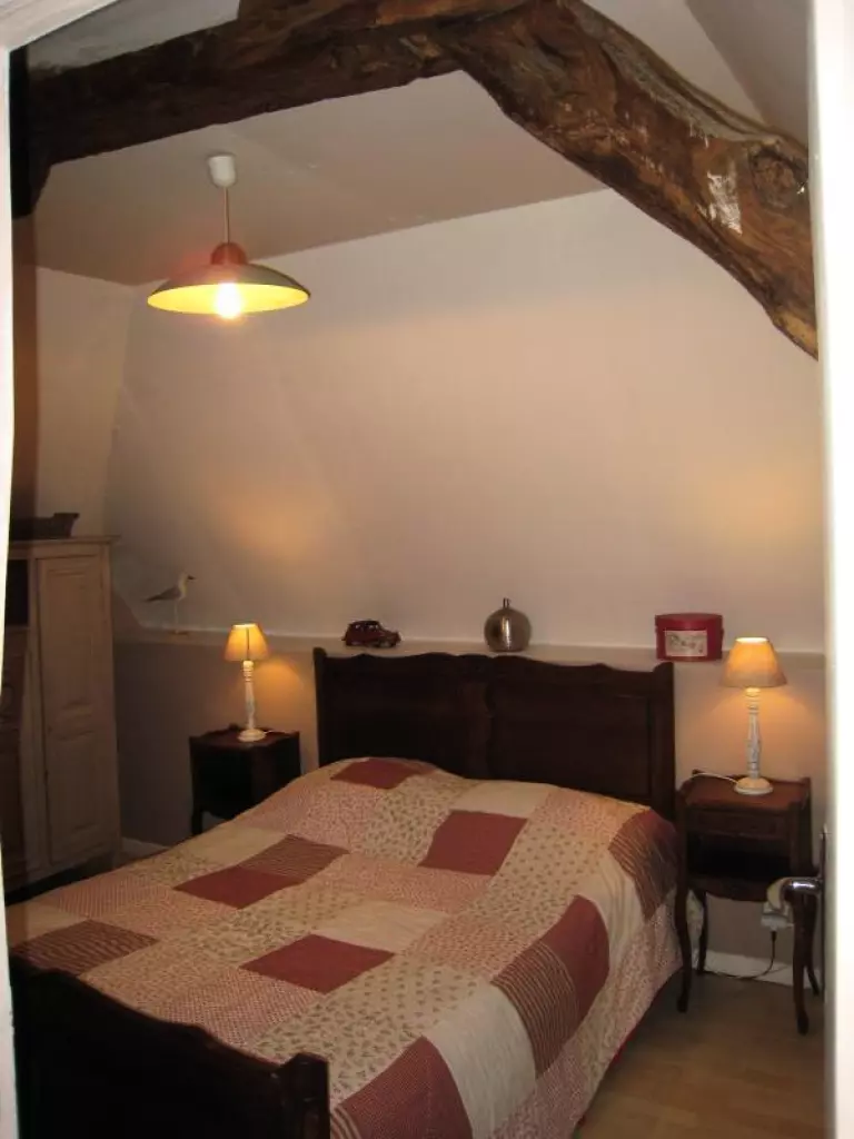 Maison indépendante. Séjour. Coin-cuisine. Chambre 1 (1 lit 140). Ch2 (2 lits 90). Salle d'eau. Wc. Cheminée. TV. Lave-linge. Draps en location. Service ménage en supplément. Chauffage électrique compris. Terrain clos commun. Salon de jardin. Barbecue. WiFi accessible dans la partie commune des chambres d'hôtes. Cette ancienne boulangerie en pierre du XVIIe Siècle vous accueille pour un séjour reposant à la campagne. Elle est située au coeur du département et offre ainsi la proximité de tous les sites touristiques et de la mer.