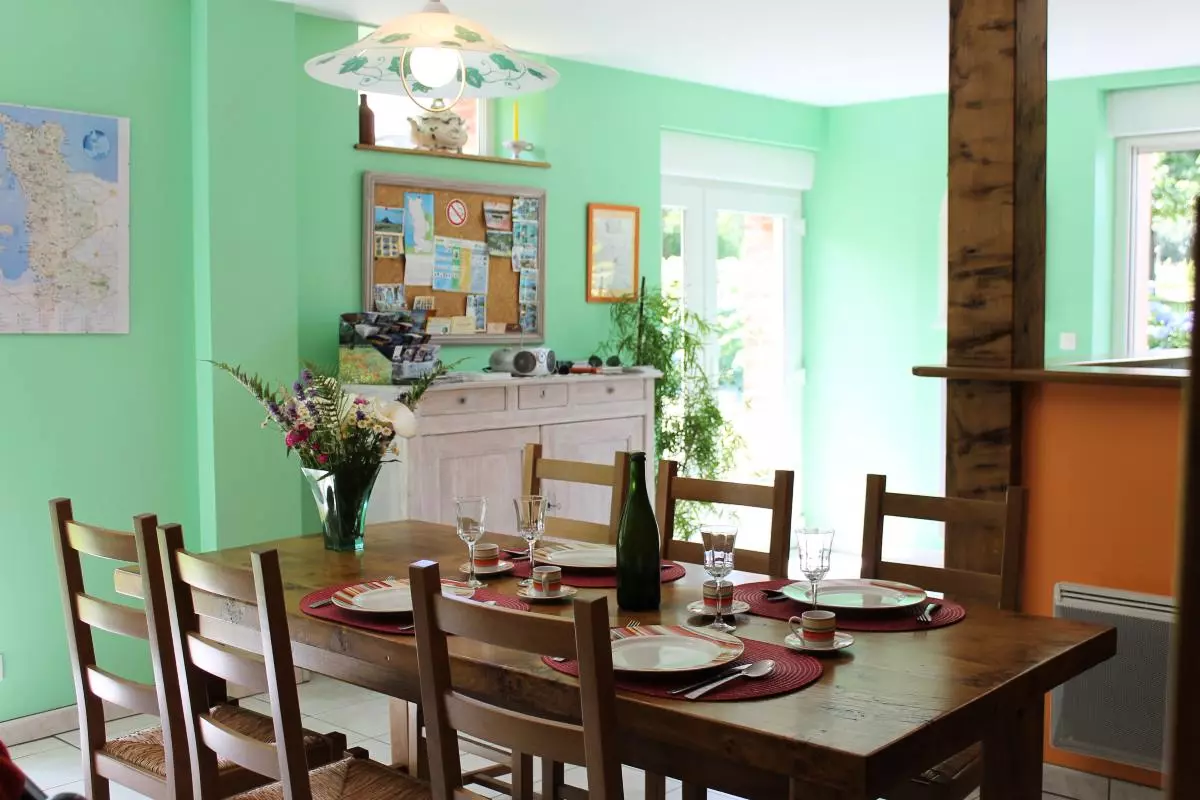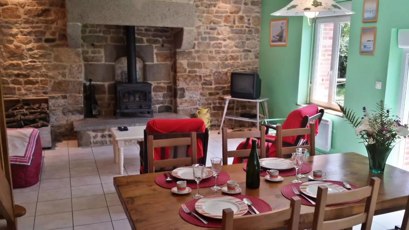 Maison indépendante. Séjour. Coin-cuisine. 2 chambres. 1 lit 140. 2 lits 90. 1 lit bébé. Salle d'eau. Wc. Poêle à Bois.TV. WIFI. Lave-linge. Draps et linge de maison en location. Service ménage en supplément. Chauffage électrique en supplément. Terrain non clos privé. Salon de jardin. Barbecue. Bac à sable. Cernée par un plant de pommiers, cette ancienne boulangerie aux couleurs chatoyantes se situe en retrait de la maison des propriétaires. La famille Grente sera heureuse de vous accueillir dans ce cadre de verdure.