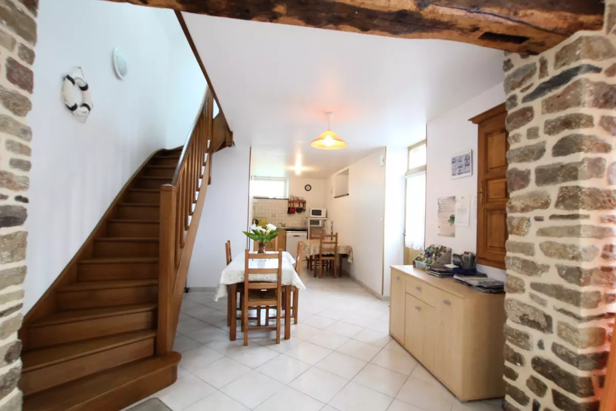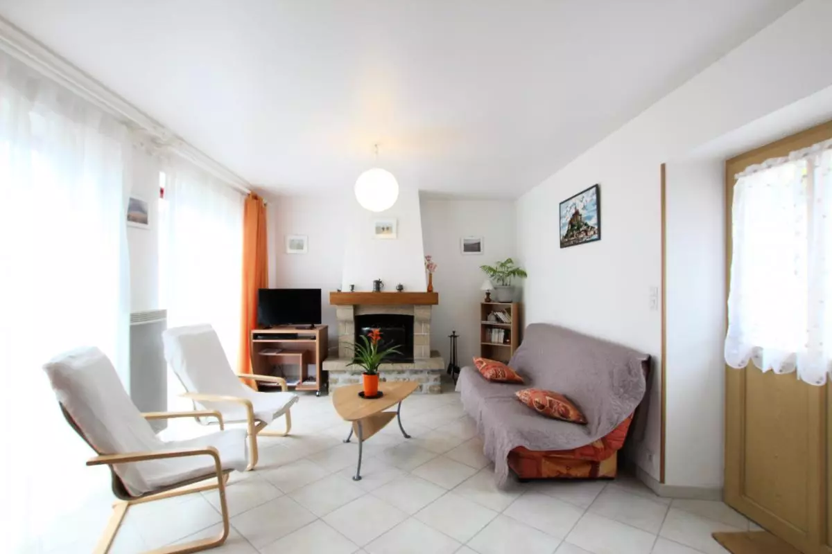Maison indépendante. Séjour. Coin-cuisine. CH1: 1 lit 160. CH2: 2 lits 90. 1 canapé convertible. Cheminée. TV tnt. Lecteur DVD. Lave-linge. Lave-vaisselle. WC au rdc et à l'étage. Draps en location. Linge de maison en location. Service ménage en supp. Chauffage électrique en supp. Terrain clos privé. Terrasse. Salon de jardin. Barbecue. Garage. Gîte situé dans un petit hameau tranquille de la Baie du Mont-St-Michel, non loin des fameuses falaises de Champeaux. Nombreux sentiers de randonnées alentours permettant d'admirer la Merveille. Traversées de la baie à 2 km.