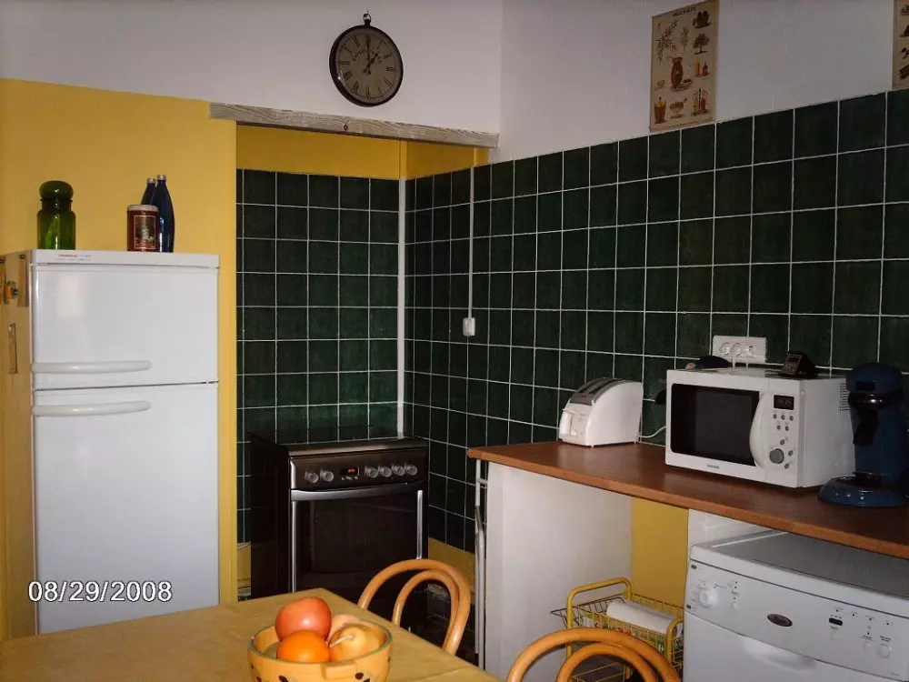 Au 1er étage: séjour, cuisine, salle d'eau, WC, buanderie. Au 2ème étage : 2 chambres donnant sur la loggia. 1 lit en 110, 1 lit en 130 et 1 lit en 140, salle d'eau, WC. Chauffage électrique en sus. Gîte situé dans un village proche de la mer, à 13 kms, avec terrasse en loggia( environ 10 m²) donnant sur les paysages du Parc Naturel de la Narbonnaise. Garage à disposition. Boucles de promenades au départ du gîte. Jardin botanique sur la commune. Le village est situé sur l'ancienne frontière Aragonnaise. Fête de la Frontière en juin et du village le 15 Août.