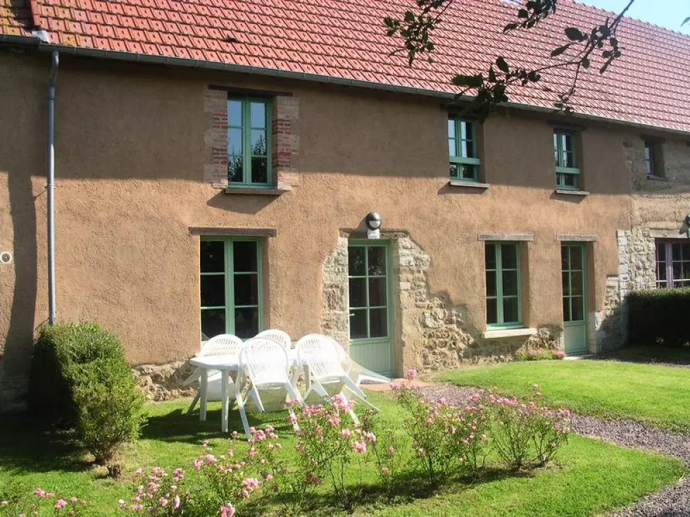 Maison mitoyenne à 4 autres locations. Salon. Salle à manger. Coin-cuisine. Chambre 1 (1 lit 140). Ch2 (3 lits 90). Ch3 (2 lits 90). 1 canapé convertible. Salle de bains. Salle d'eau. 2 wc. TV. Magnétoscope. Lave-linge. Lave-vaisselle. Draps et linge de maison non fournis. Chauffage électrique en supp. Terrain clos commun. Salon de jardin. Aire de jeu commune. Au coeur du Parc Naturel des Marais du Cotentin et du Bessin, cette longue bâtisse a été restaurée dans le style local avec enduits et plafonds en terre. Les décors muraux vous rappelleront le patrimoine environnant. Barbecue collectif. Plage du débarquement à 30 km (Utah Beach).