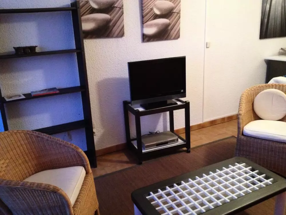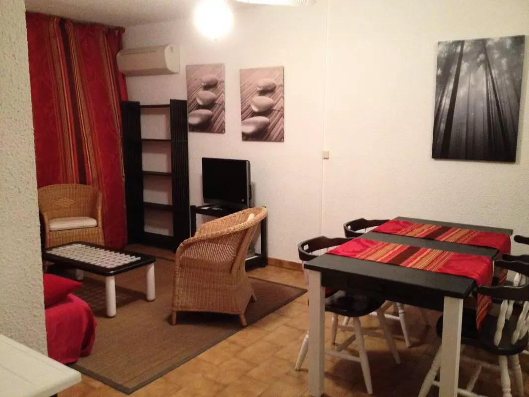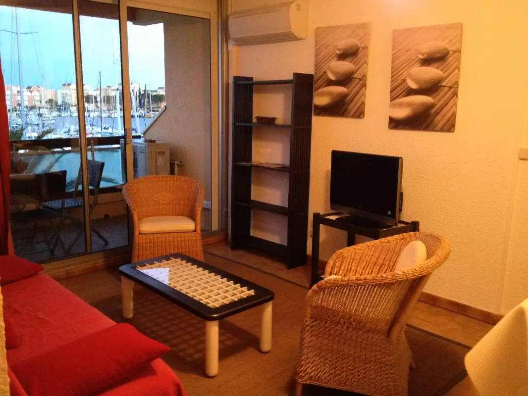 Séjour-cuisine avec(TV avec TNT, four MO, LL, DVD,) une terrasse de 14m² avec un salon de jardin. 1 chambre avec 2 lits de 1 personne jumellables. 1 alcôve avec 2 lits 1 personne superposés. Salle de bains. WC ind. Climatisation reversible en sus. Au coeur de l'animation de la station balnéaire de Gruissan, avec tous commerces et toutes les animations sur place, appartement situé au 2ème étage d'une résidence entièrement clôturée avec piscine et tennis sur la résidence (tennis payant). Les plages de sable fin sont à 1.5kms. Superbe vue sur le port. Parking à 200m. Taxe de séjour à régler sur place.