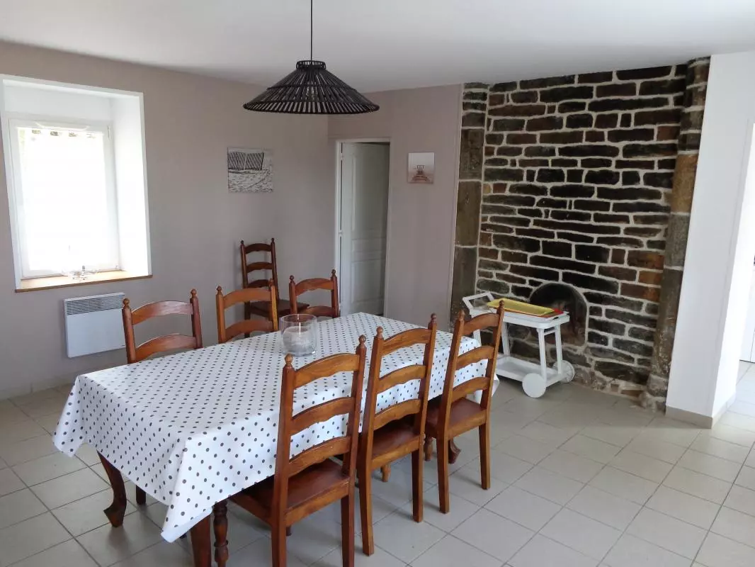 Maison indépendante. Salon. Salle à manger. Cuisine. 3 chambres. 2 lits 140. 2 lits 90. 1 canapé convertible. 2 salles d'eau. 2 wc. TV. Lave-linge. Lave-vaisselle. Chauffage électrique compris. Draps et linge de maison non fournis. Service ménage sur demande. Cour close privée. Salon de jardin. Barbecue. Parking. Dans un cadre boisé, ce gîte orienté Sud Est est situé à 10 km de la remarquable abbaye de La Lucerne. Possibilités de promenades en forêt dans ce secteur.Aire de jeux publique à proximité.