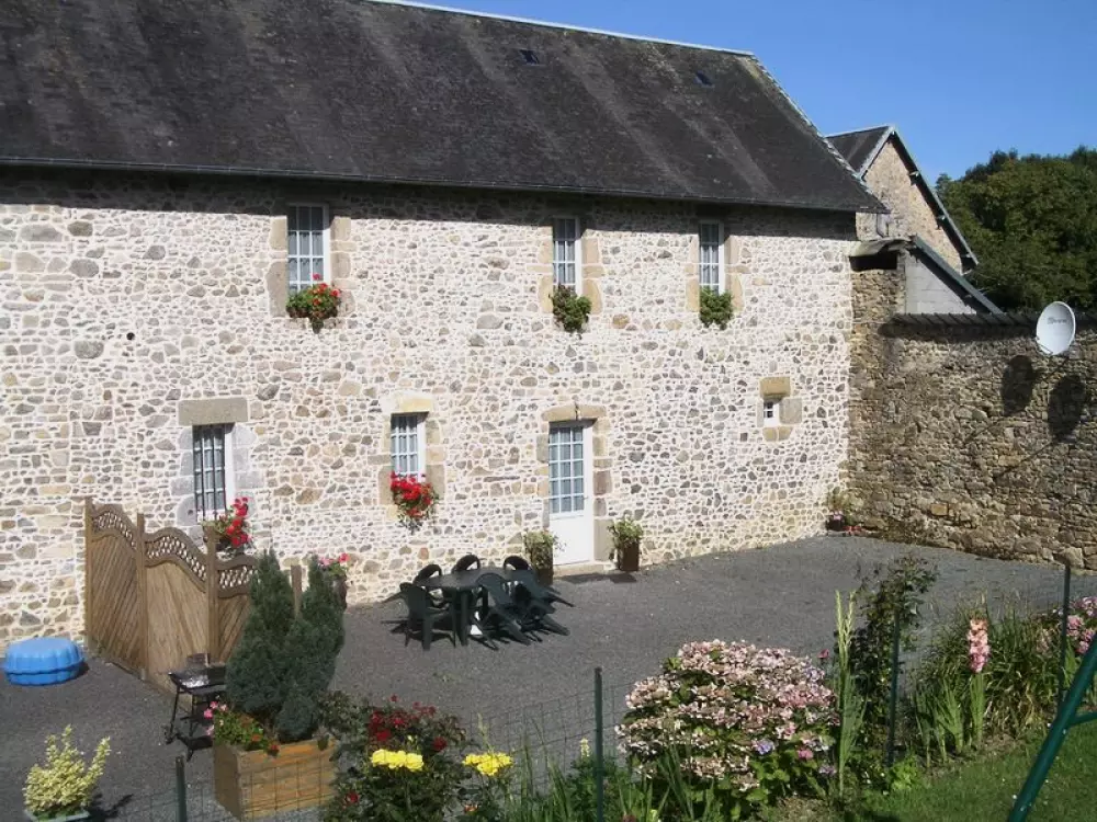maison mitoyenne à une autre location. maison en pierre. salon. séjour. coin-cuisine. 3 chambres. 1 lit 140. 2 lits 90. 2 lits 90 superposés. salle d'eau. 2 wc. TV. lave-linge. lave-vaisselle. Draps et linge de maison en location. Service ménage en supplément. Chauffage électrique compris. terrain clos commun. salon de jardin. barbecue. portique Une charmante entrée arborée introduit les hôtes dans un cadre bucolique très tranquille. 2 gîtes ont été aménagé dans la grande dépendance en pierre.Très vaste terrain de verdure face aux gîtes.