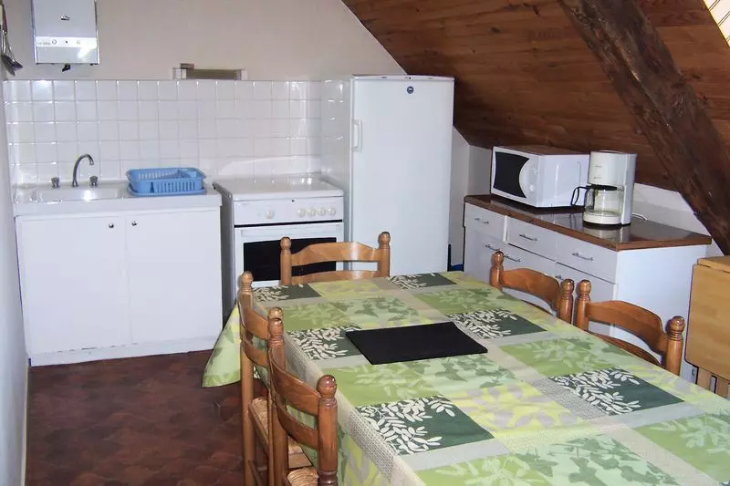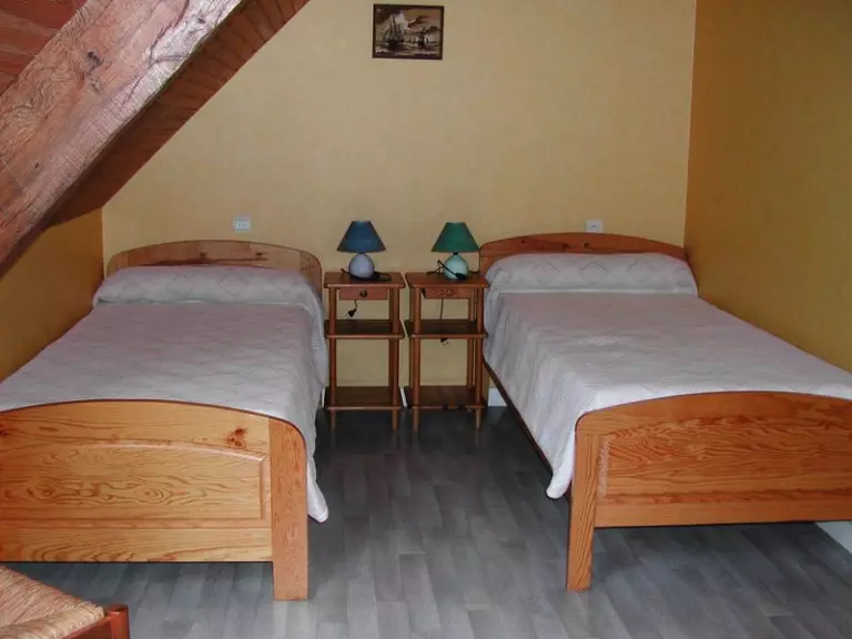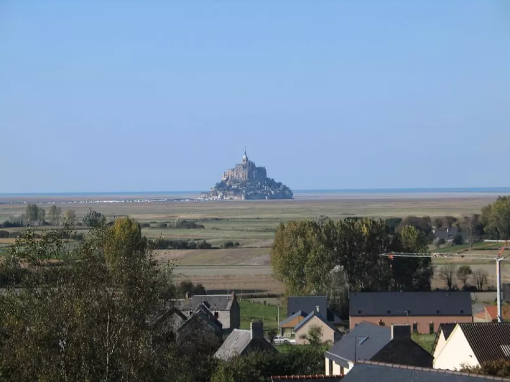 Appartement au 2ème étage. Séjour. Coin-cuisine. 3 chambres. 1 lit 140. 4 lits 90. 1 lit bébé. Salle de bains. Wc. Prise TV. Lave-linge commun. Draps et linge de maison non fournis. Chauffage électrique compris. Terrain clos commun. Salon de jardin. Ping-pong. Terrain de pétanque. Dans un ancien presbytère comprenant 5 appartements, vous pourrez ranger vos bicyclettes dans un local de retour d'une balade au Mont Saint Michel. Vue sur le mont et sa baie.