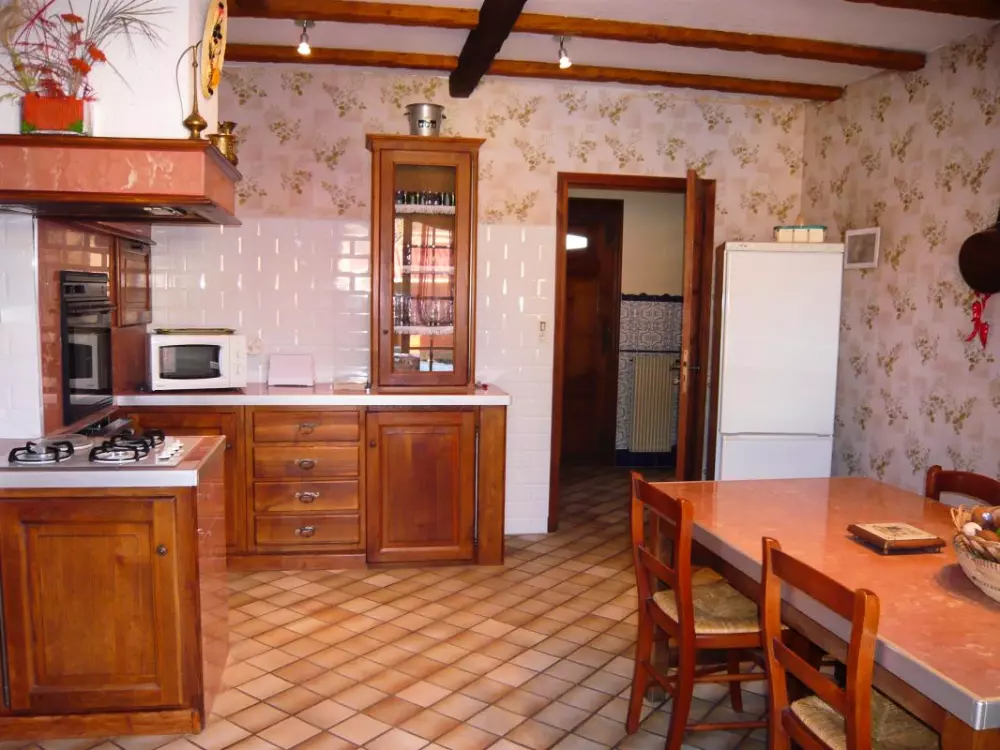 Gîte comprenant en demi étage: cuisine, salon-salle à manger donnant sur une terrasse plein sud. A l'étage: 3 chambres (1 lit en 160, 1 lit en 140, 1 lit en 90, 1 lit en 120). SDB+douche. WC. Au rez de chaussée: Salle de billard, 1 chambre donnant sur le jardin(2 lits en 90) SDE-WC. Supplément chauffage (50?/semaine). Taxe de séjour: 0.80?/J/pers. Gîte situé dans un village, à proximité de la cité de Carcassonne, de l'abbaye de Caunes Minervois et des carrières de marbre rose. Nombreuses promenades pédestres sur la commune. Piscine privative et close sur place (9X4 et 1.20 a 1.80m de profondeur). Grand jardin avec salon de jardin, abri avec barbecue. Taxe de séjour: 0.80E/J/Pers.