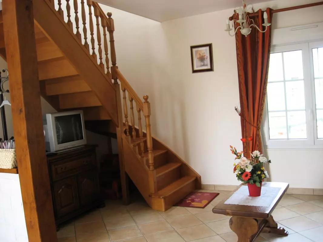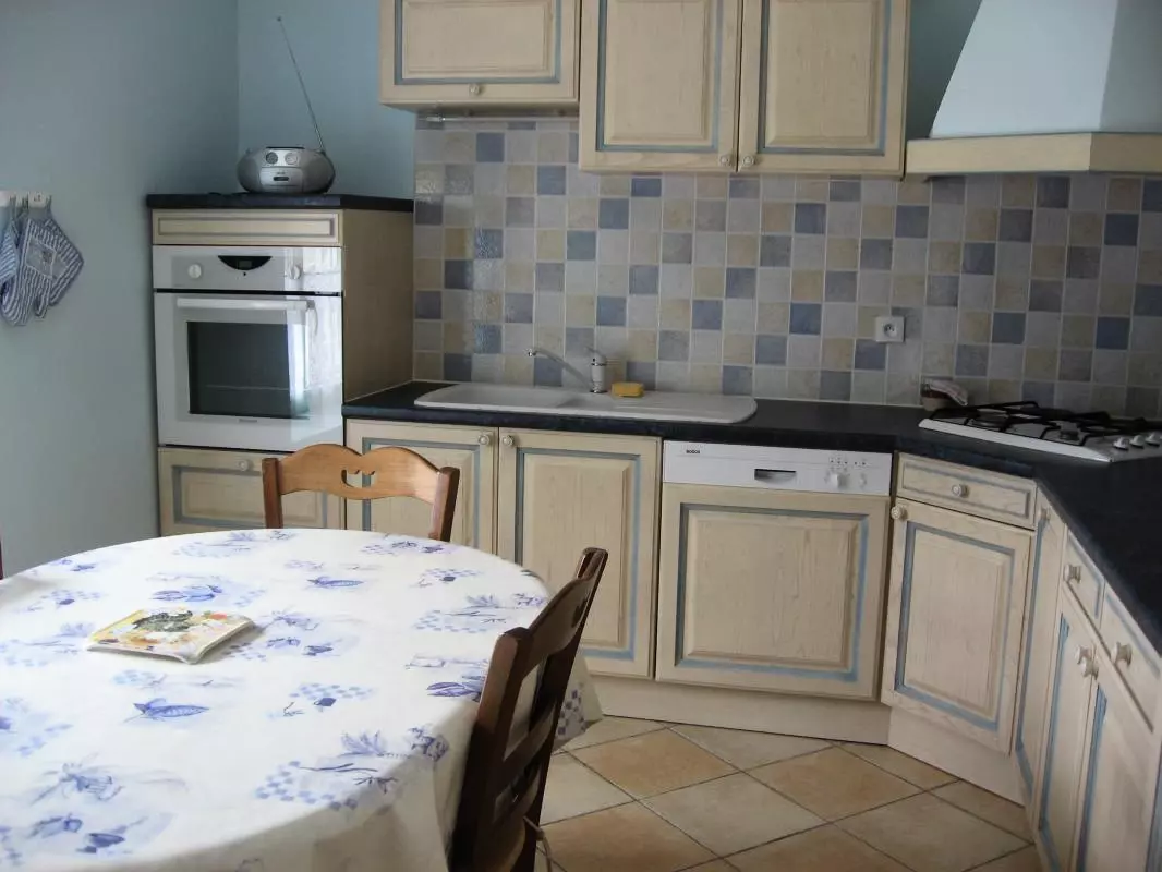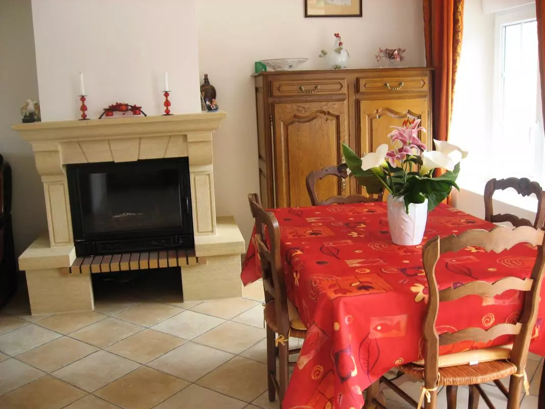 Maison mitoyenne à celle du propriétaire. Séjour. Cuisine. CH 1 : 1 lit 160. CH 2 : 2 lits 90 - 1 lit bébé. Salle d'eau. 2 WC. Cheminée insert. TV avec lecteur DVD. Lave-linge. Lave-vaisselle. Wifi. Chauffage électrique en supp. Draps en location. Linge de toilette et de maison en location. Service ménage sur demande. Terrain clos privé. Terrasse. Salon de jardin. Barbecue. D'un côté l'âne, de l'autre les moutons, sans oublier le poulailler : voilà une véritable invitation à la campagne pour petits et grands! Ce gîte confortable et fonctionnel est donc parfait pour une mise au vert.