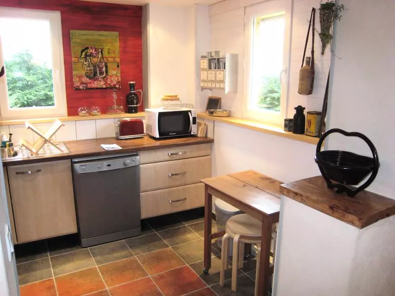 Maison indépendante. Séjour coin cuisine. 2 chambres. 1 lit 160. 2 lits 90. 1 lit bébé. 1 canapé convertible. salle d'eau. 2 wc. Cheminée. TV. DVD. Radio lecteur MP3. Internet. Lave linge. Lave vaisselle. Draps en location. Service ménage en supp. Chauffage électrique en supp. Terrain clos privé. Table pique nique. Barbecue. Toboggan. Terrain de boules. Un cadre bucolique constitué d'arbres, de chevaux, d'un étang (pêche possible) vous accueille. L'intérieur soigné de ce gîte séduit par la qualité de sa décoration, apaise par ses jeux de couleurs et étonne par sa touche début 1900.