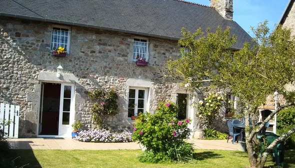 Maison indépendante. Séjour coin-cuisine. 4 chambres. 3 lits 140. 2 lits 90. Lit parapluie bébé+ chaise haute. Salle de bain. Salle d'eau. 2 wc. Cheminée. TV. Lecteur DVD. Lave-linge. Lave-vaisselle. Chauffage électrique en supp. Draps et linge de maison en location. Service ménage en supp. Terrain clos privé. Terrasse. Salon de jardin. Chaises longues. Barbecue. Garage. Un ancien puits garde l'entrée de cette demeure en pierre familiale. On apprécie le jardin dominant le vallon bocager où coule la Sienne. Son embouchure est d'ailleurs l'un des plus beaux paysages de la région.