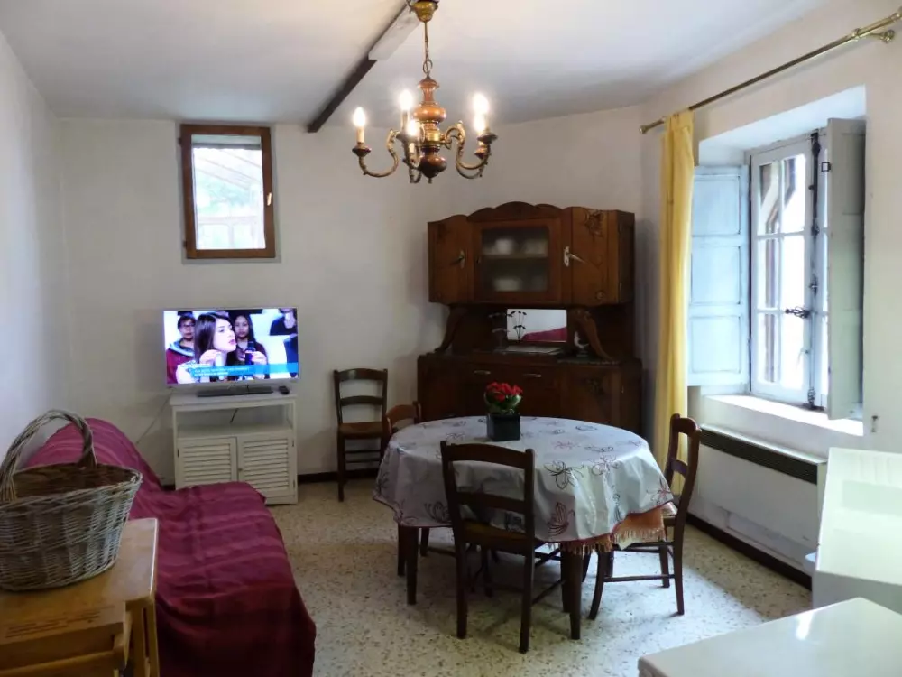 Sur 2 niveaux: au rez de chaussée, séjour-kitchenette. WC. A l'étage: 1 chambre climatisée(1 lit 2 pers.- 2 lits 1 pers superposés). Salle d'eau. Chauffage électrique en sus. TV. Lave Linge. Ensemble de 2 gîtes aménagés dans une propriété de caractère en bordure de l'étang, avec cour commune de 600m2 ombragée. Parking privé. Salon de jardin et barbecue. Ping pong. Taxe de séjour à régler sur place.