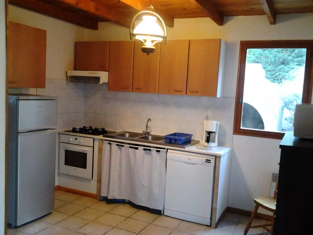 Gîte entièrement indépendant, avec séjour-cuisine. 2 chambres (2 lits 1 pers.-1 lit 2 pers). Salle de bains. WC ind. Mezzanine avec 1 lit 1 pers et coin salon. Chauffage électrique en sus. Séjour Climatisé. Petit garage avec le lave-linge. Situé dans un petit ensemble de villas traditionnelles aux abords d'un village des Corbières, le gîte a un terrain attenant clos (env 300m2) avec salon de jardin et barbecue. Garage. A 10kms des plages, face à la chapelle Saint Martin qui domine le village. Taxe de séjour en sus.