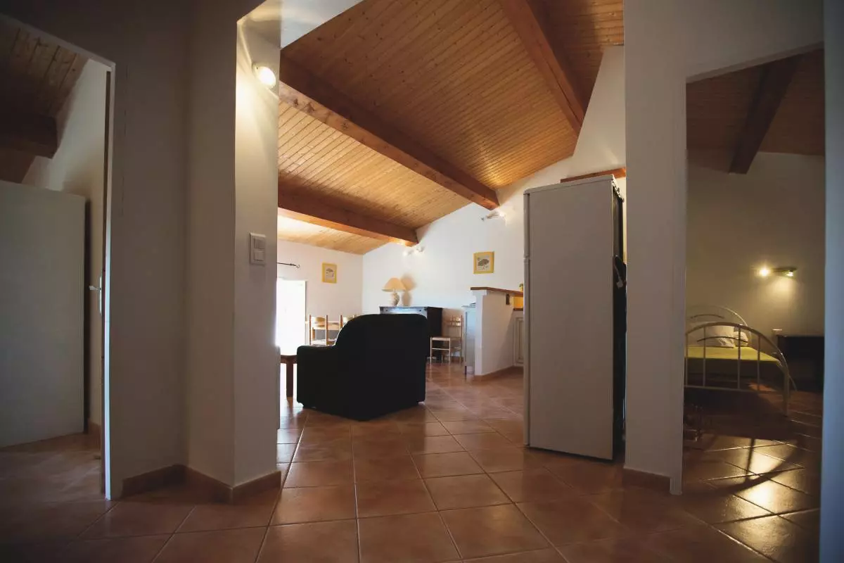 Au rdc: terrasse avec salon de jardin et barbecue donnant sur une pinède.Accès à la piscine des propriétaires. A l'étage: séjour-cuisine. 3 chambres (2 lits 2 pers.2 lits 1 pers). SDB, WC indep et douche. Chauffage électr en sus. Gîte situé sur un domaine agricole en activité, à 2 pas du Canal du Midi. En plein coeur du Minervois, les propriétaires, producteurs d'huile d'olives, vous feront découvrir leur passion pour cette culture méditerranéenne. Le gîte est à l'étage, mitoyen de la maison des propriétaires et du moulin à huile qui fonctionne de novembre à décembre. Piscine des propriétaires à disposition (12X6, profondeur de 1 à 2.50m) ouverte du (10/06 au 15/09).