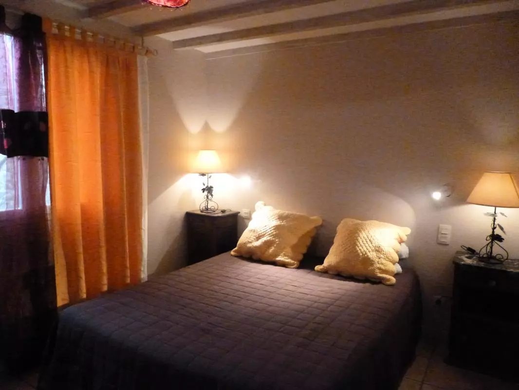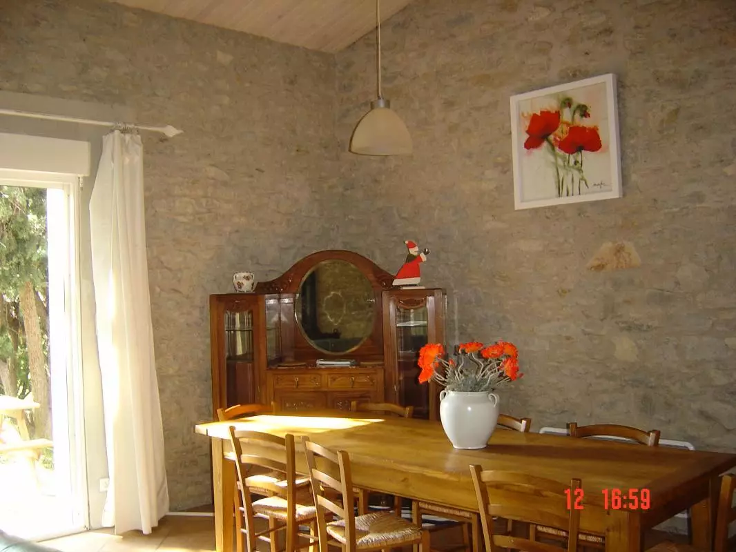 RDC: grand séjour-cuisine (four Micro-Ondes, DVD), cheminée insert (bois offert). SDB. WC ind. 2 chambres (2 lits en 160/200). A l'étage: une coin bureau bibliothèque, 2 chambres(5 lits 1 pers). Salle d'eau-WC. Chauffage élec en sus. 5 vélos sur la propriété, tennis gratuit au village. Taxe de séjour 0.80/J/adulte. A 10 min de Carcassonne, le gîte se situe, à 600 m Canal du Midi, sur un domaine avec 2 gîtes bien indépendants et une grande piscine à disposition du 1/04 au 31/10. Le gîte comprend une terrasse donnant sur un grand espace arboré avec salon de jardin et BBQ.