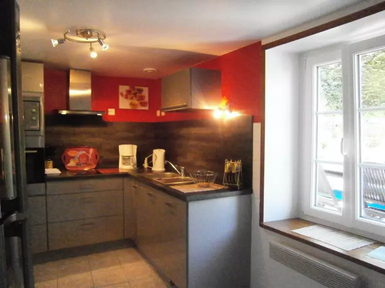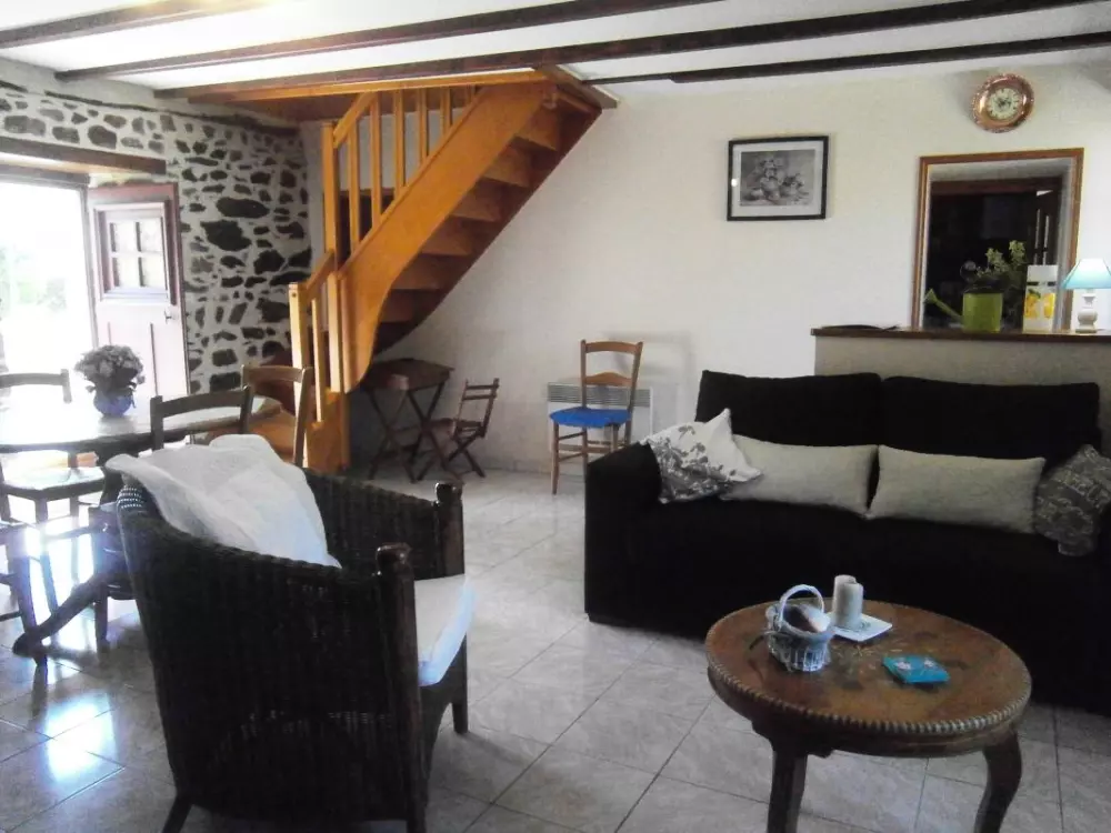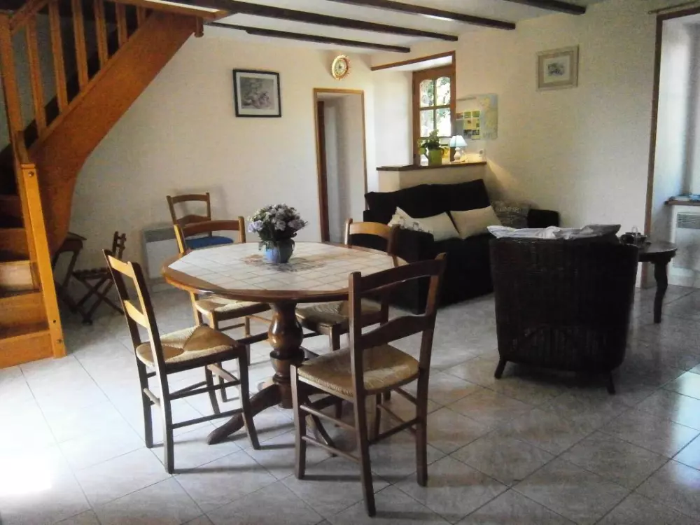 Maison mitoyenne à celle du propriétaire. Séjour. Cuisine. 1 chambre avec 1 lit 140 et 1 lit 90. 1 chambre avec 1 lit 140. 1 lit bébé. Salle d'eau. Wc. Cheminée. TV. Lave-linge. Lave-vaisselle. Draps en location. Service ménage en supp. Chauffage électrique en supp. Terrain clos privé. Terrasse. Salon de jardin. Transats. Barbecue. Entourée par le bocage, cette agréable maison nichée à flanc de colline offre une belle vue sur le Mont-Robin. Encore un bel exemple d'une ambiance campagnarde normande préservée et habilement alliée au confort moderne!