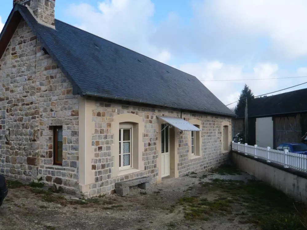 Maison indépendante entièrement en rez-de-chaussée. Séjour. Cuisine. 2 chambres (2 lits 90) + (2 lits 90). Salle d'eau. Wc.Prise TV. Tél. téléséjour. Lave-linge. Draps et linge de maison non fournis. Chauffage électrique en supp. Terrain clos privé. Terrasse. Salon de jardin. Barbecue. Le bocage domfrontais est riche en produits du terroir avec sa spécialité : le Poiré ! Maison de campagne à proximité du splendide site naturel de la Fosse Arthour : escalade, location VTT, chevaux...