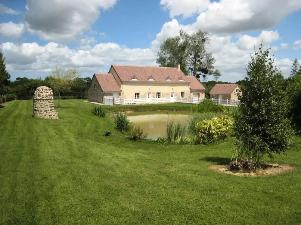 Maison indépendante. Séjour avec coin cuisine. Buanderie. 4 chambres. 3 lits 140. 2 lits 90. Lit bébé. 2 salles d'eau. 2 WC. Cheminée. TV , lecteur dvd et home cinema. Lave linge. Lave vaisselle. Draps et linge de toilette en location. Service ménage en supp. Chauffage électrique géothermie au sol. Terrain clos privé avec étang. Salon de jardin. Barbecue. Ping pong. Garage. Un gîte familial grand confort entièrement rénové dans la tradition de la terre et de la chaux. Un écrin de verdure de 5000m² doté d'un étang (possibilité de pêche) offre un cadre idéal pour le repos. Le marais de la Sangsurière est à quelques pas de ce gîte situé dans le Parc Naturel Régional des Marais du Cotentin.
