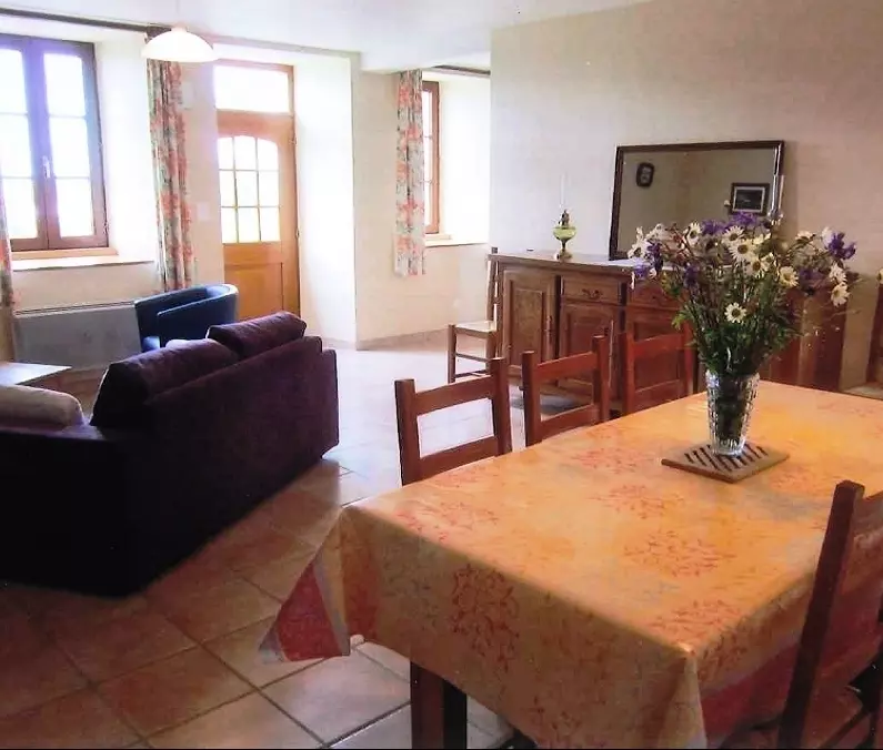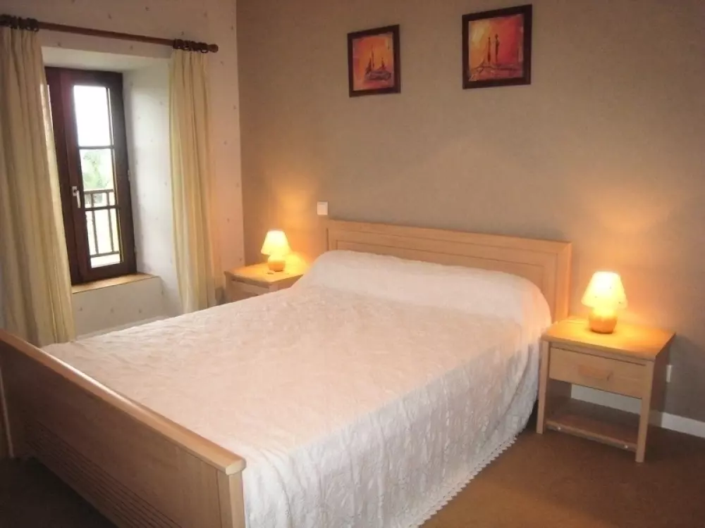 Maison indépendante. Coin-cuisine. Séjour. Salon. CH1: 1 lit 140. CH2: 2 lits de 90. CH3: 1 lit de 90. 1 mezzanine: 1 lit 140. Chaise bébé. Salle d'eau. Salle de bain. Cellier. 2 wc. TV. Lave-linge. Lave-vaisselle. Chauffage électrique compris. Draps et linge de maison non fournis. Terrain non clos privé. Abri. Salon de jardin. Barbecue. Portique. Cette bâtisse se dresse fièrement à flanc de colline et offre un panorama magnifique au sud sur le bocage. Ce secteur est d'ailleurs très vallonné et idéal pour la marche et le VTT. (GR suivant la ligne de crète et nombreux balisages aux alentours)