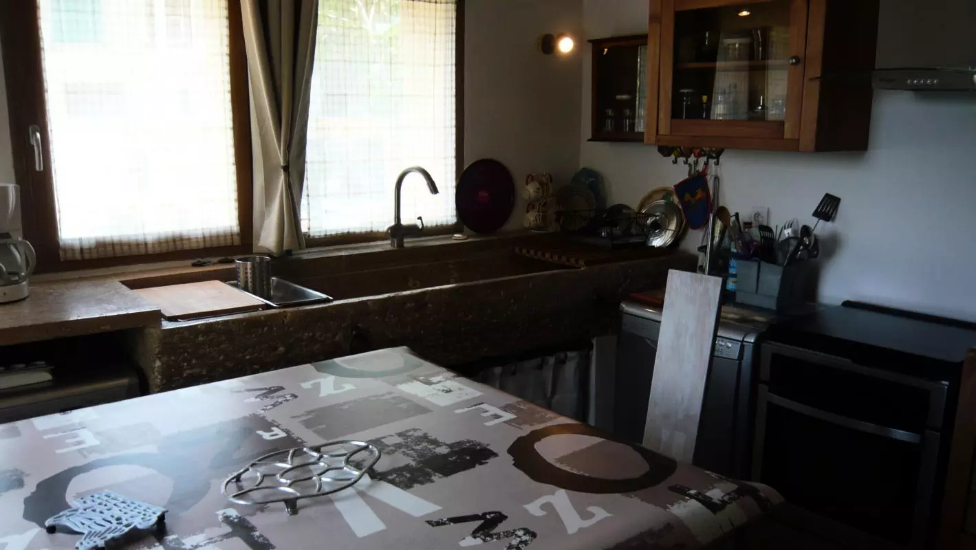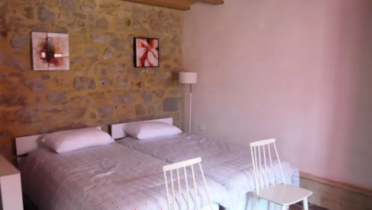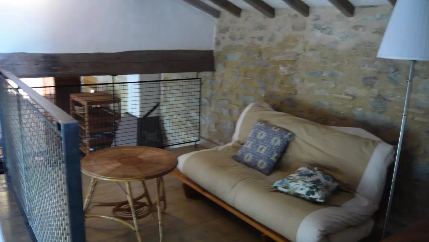 Gite comprenant: séjour avec cheminée, cuisine avec bel évier en pierre, 1 Ch avec 2 lits 90, SE,WC. A l'étage mezzanine, 1 Ch donnant sur la terrasse solarium, 1 lit 140. Chauffage électrique en sus (35?/semaine et 15?/week end). Propriétaire engagé dans une démarche éco-environnementale. Gite de caractère situé dans un village vigneron des Corbières sur la route des sites du Pays Cathare qui traverse Talairan avec grand jardin clos et garage attenant. Terrasse solarium, patio derriere le gite et barbecue. Petit jardin de plantes aromatiques. Village avec petits commerces et nombreux caveaux de dégustation des vins. Balades balisées sur les sentiers entre garrigues pinèdes et vignobles. Plages méditerranéennes à 1h.