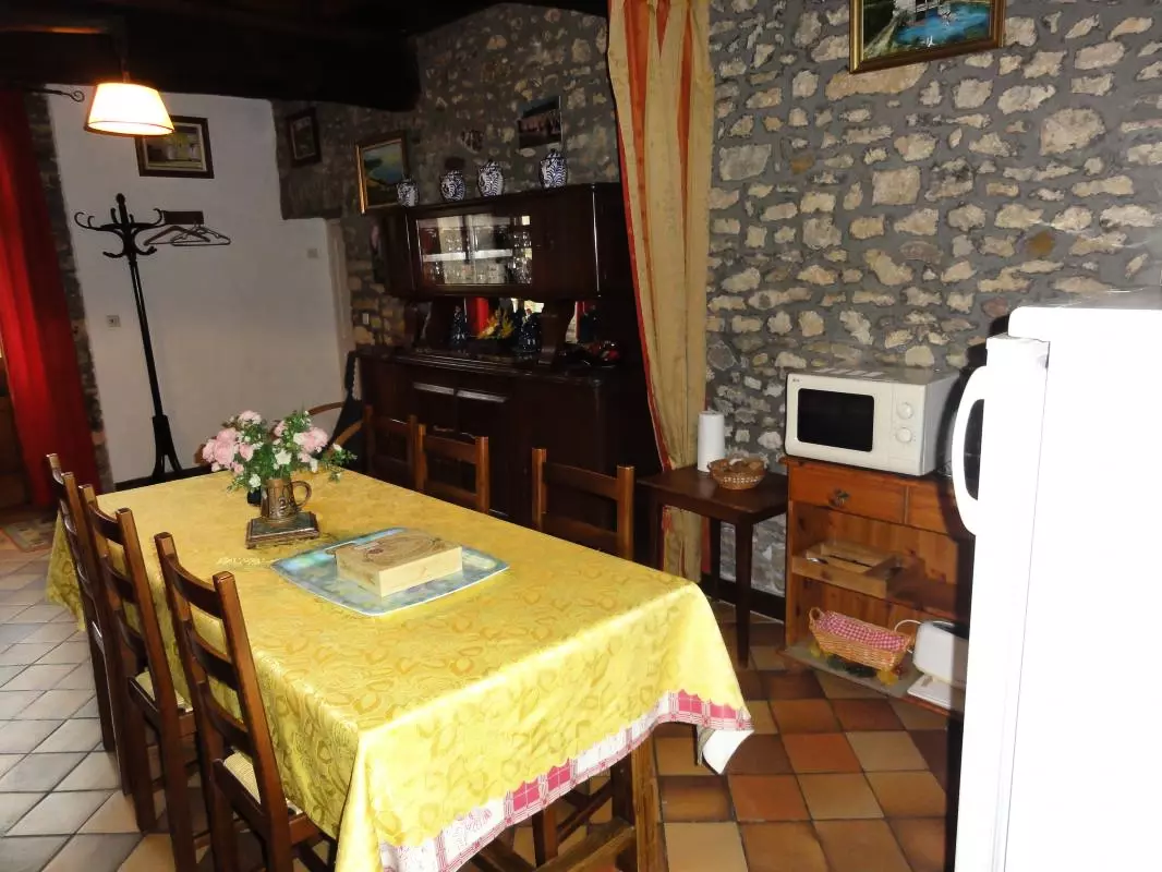 Maison mitoyenne à celle du propriétaire entièrement en rez-de-chaussée. Séjour: 1 lit 140. Petit coin cuisine. 1 chambre. 1 lits 140. 1 lit enfant. Salle d'eau avec sèche-serviette électrique. Wc. TV. Lave-linge. Draps et linge de maison en location. Chauffage électrique en supp (forfait). Terrain non clos commun. Salon de jardin. Barbecue. Garage. Situé sur une ancienne exploitation agricole, vous profiterez des espaces extérieurs bien valorisés avec étangs et pêche sur place. Plage du débarquement à 20 km.