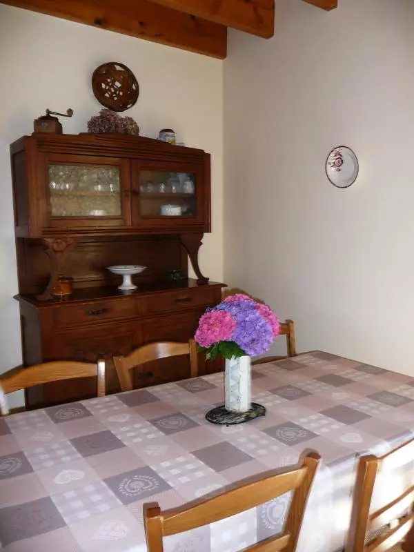 Maison mitoyenne à une habitation. Séjour. Coin-cuisine. 3 chambres (1 lit 160, 4 lits 90). Salle d'eau avec WC. TV. Lave-linge. Lave-vaisselle.Wifi. Toutes charges comprises. Draps en location. Linge de toilette et de maison en location. Service ménage en supplément. Terrain clos privé. Salon de jardin. Barbecue. Abri. Petit gîte douillet doté d'une belle terrasse orientée au sud où il fait bon se reposer en toute intimité. Une jolie vue sur le bocage valognais s'offre à vous. Cette zone boisée et vallonnée est idéale pour les sorties pédestres.