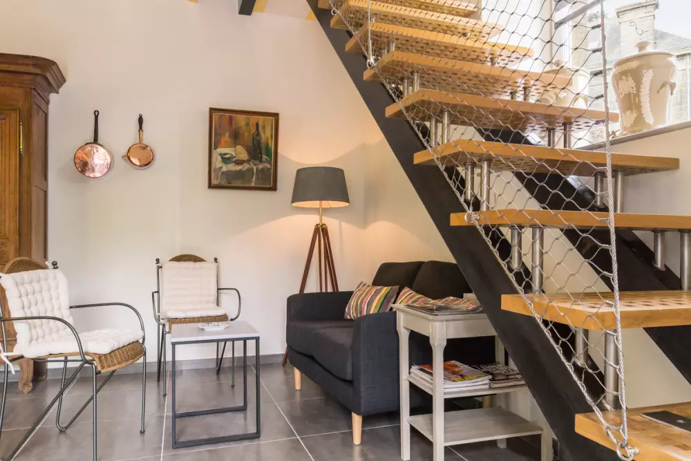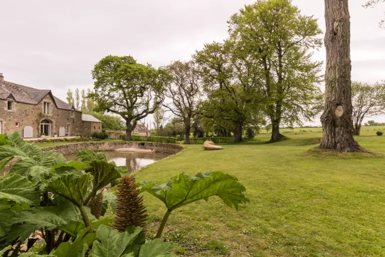 Maison mitoyenne à celle des propriétaires. Séjour avec coin-cuisine. Chambre 1 (canapé lit 160 grand confort) avec TV, wc, et salle d'eau privée. A l'étage: chambre 2 (3 lits 90 + petite mezzanine avec lit d'appoint) avec TV, wc et salle de bains privée (baignoire sabot). Lit et chaise bébé. Chaine hifi. Internet wifi. Lave-linge. Lave-vaisselle (6 couverts). Chauffage électrique. Toutes charges comprises. Draps et linge de maison fournis. Lits faits à l'arrivée. Parc paysager commun non clos. Jardin privé non clos. Terrasse. Salon de jardin. Barbecue. Abri avec home trainer. Parking. En contrebas de la route menant au village classé de Barfleur, la Bréhoulle est une de ces propriétés qui attise la curiosité. Posée dans son écrin de verdure (2,5Ha), elle invite le visiteur au lâcher prise. Il faut dire qu'avec ses arbres centenaires magnifiques, son ruisseau et son plan d'eau où quelques canards vous accueillent, le décor est idyllique! Discrètement aménagé dans le prolongement de la maison des propriétaires, le gîte se révèle chic et élégant. Sa configuration est singulière, avec deux espaces de couchages très indépendants à chaque niveau. Les teintes de gris et de jaune sont très douces et de gris et de jaune sont très douces et le bleu du séjour apporte une tonicité appréciable. La presqu'île du Cotentin vous attend et pourrait bien vous