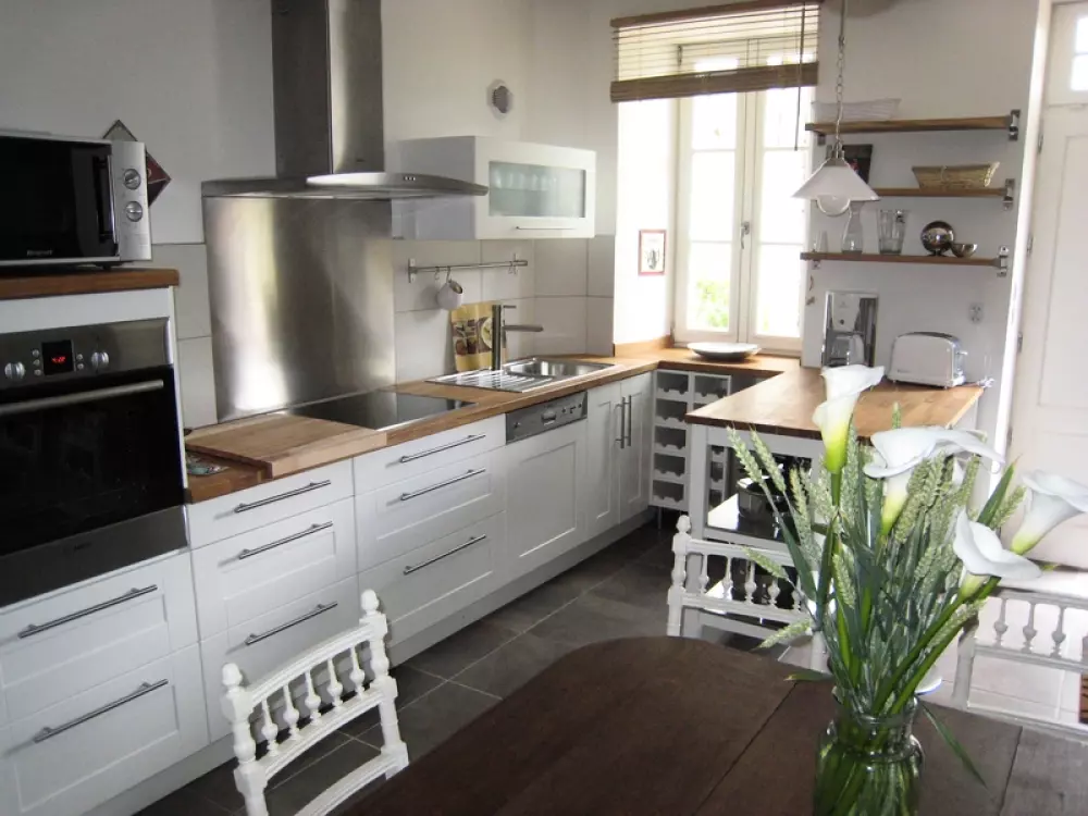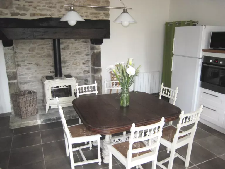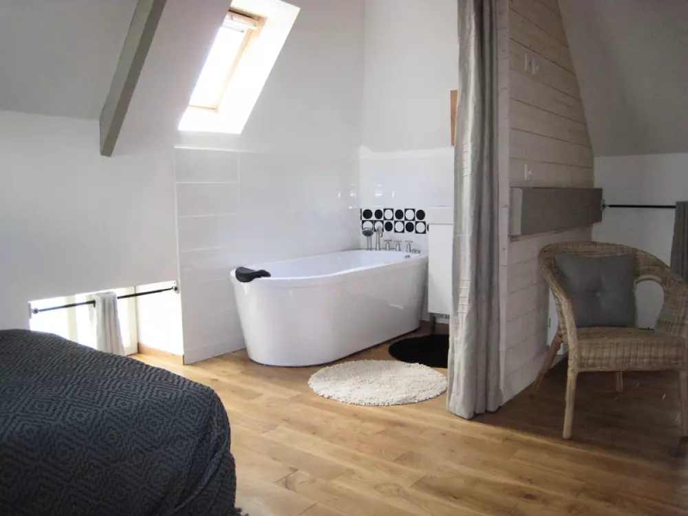 Maison indépendante. Séjour coin cuisine. CH 1 : 1 lit 140. CH 2 : 2 lits 130. Salle de bain (balnéo) et salle d'eau privatives. wc. Poêle à bois. TV et satellite, WIFI. Lave linge. Sèche linge. Lave vaisselle. Machine à café à capsules. Chauffage électrique en supp. Draps en location. Service ménage en supp. Terrain commun non clos. Cour close privée. Salon de jardin. Transats. Barbecue. Ping-pong. Portique. C'est un bel ensemble architectural du 17ème qui sera le cadre de votre séjour. A côté de la maison de maître des propriétaires, la charmante tour à la décoration soignée offre un hébergement atypique sur 3 niveaux. Salle de bain privée par chambre. Dans cette région partagée entre mer et bocage, les activités ne manquent pas! Petits animaux acceptés.